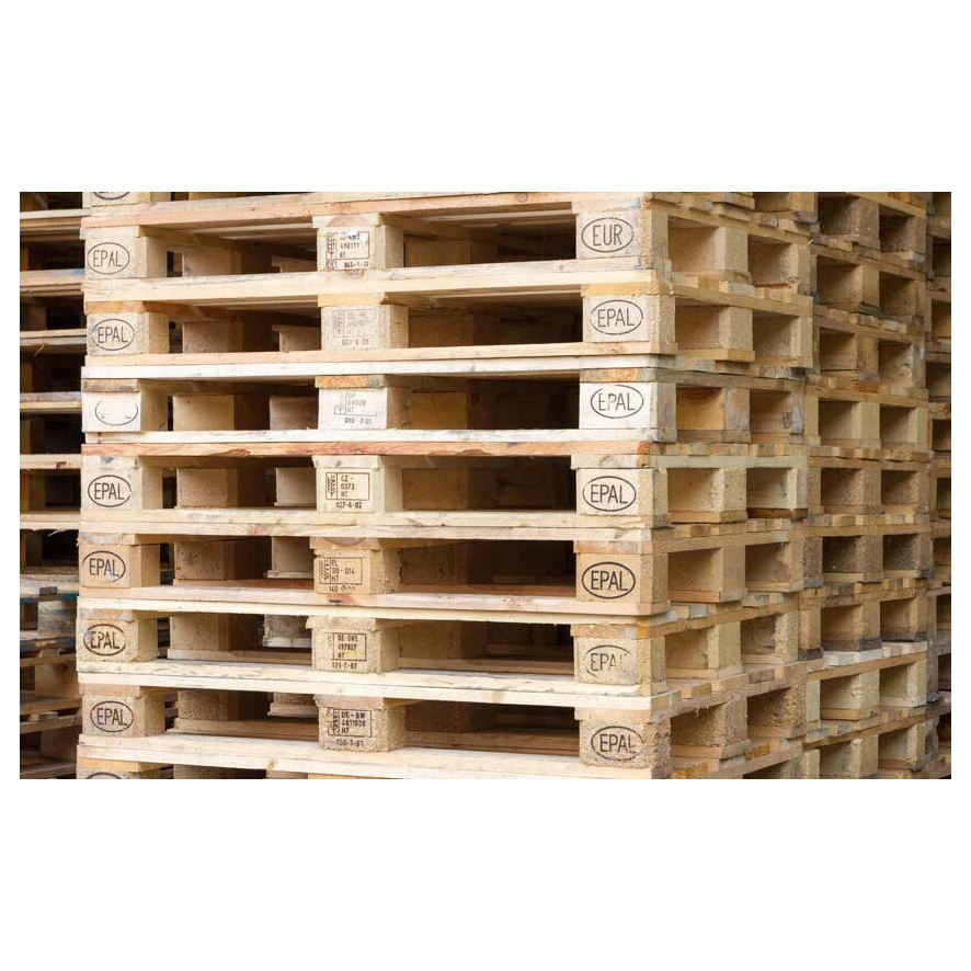 พาเลทไม้มาตรฐานยุโรป EPAL สำหรับการขนส่งตู้คอนเทนเนอร์และการจัดเก็บในคลังสินค้า มีจำหน่ายจำนวนมาก