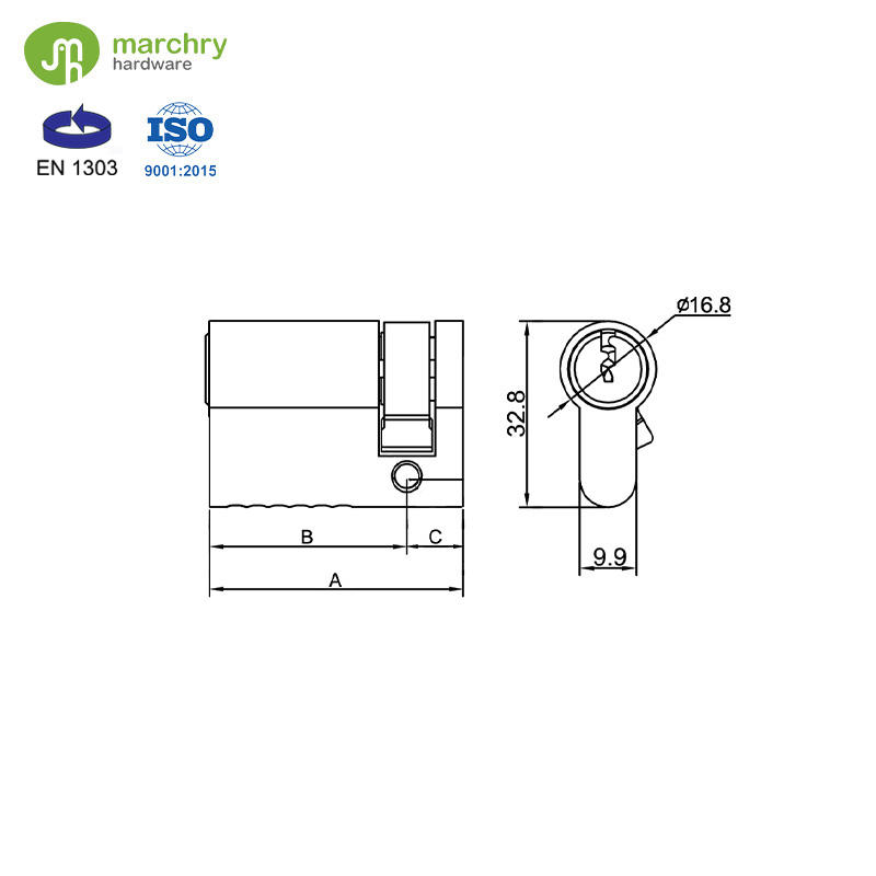ล็อคประตูทรงกระบอกสไตล์ยูโรครึ่งกระบอกทองเหลืองเพื่อความเป็นส่วนตัวสำหรับล็อคร่อง