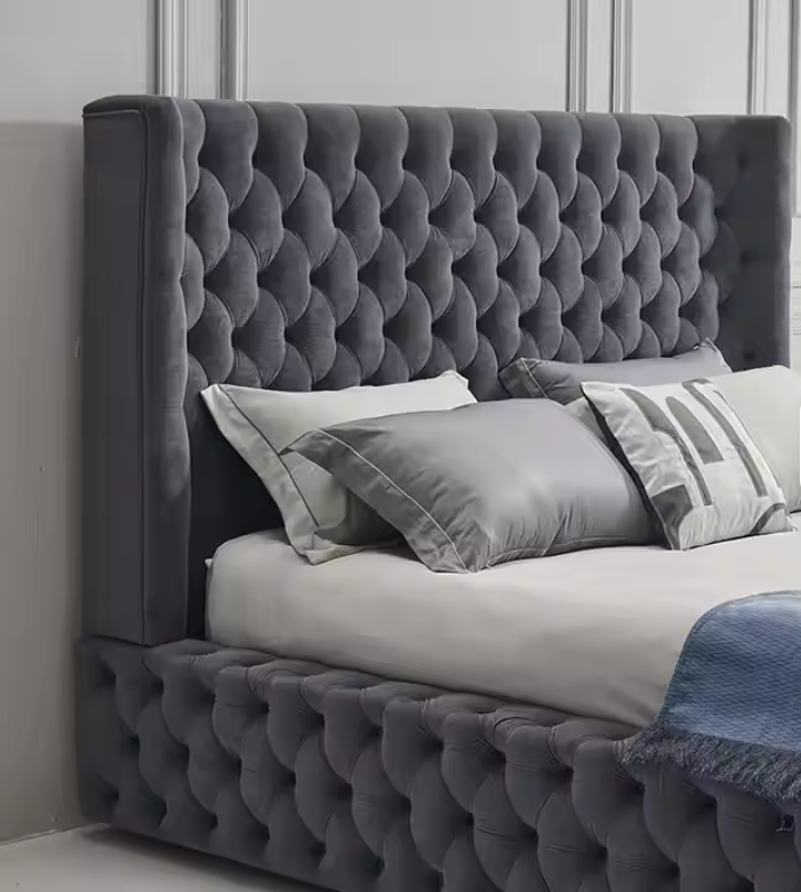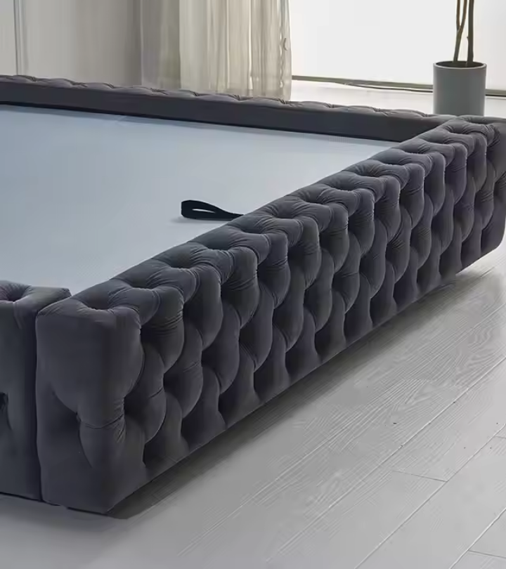 โครงเตียงคู่สไตล์ยุโรปแบบดีลักซ์ เฟอร์นิเจอร์สั่งทำสำหรับโรงแรมและอพาร์ตเมนต์ ขนาดคิงไซส์ วัสดุไม้ ปรับระดับได้