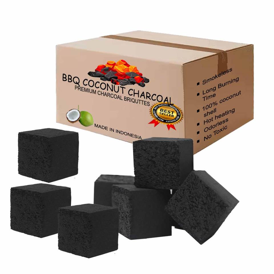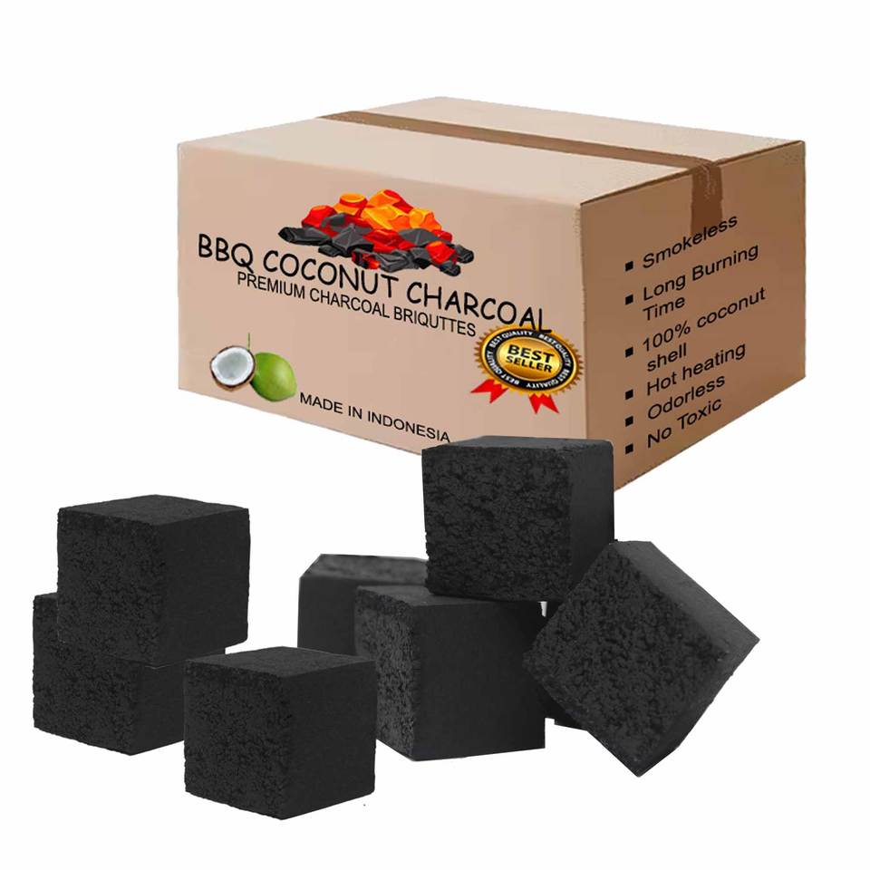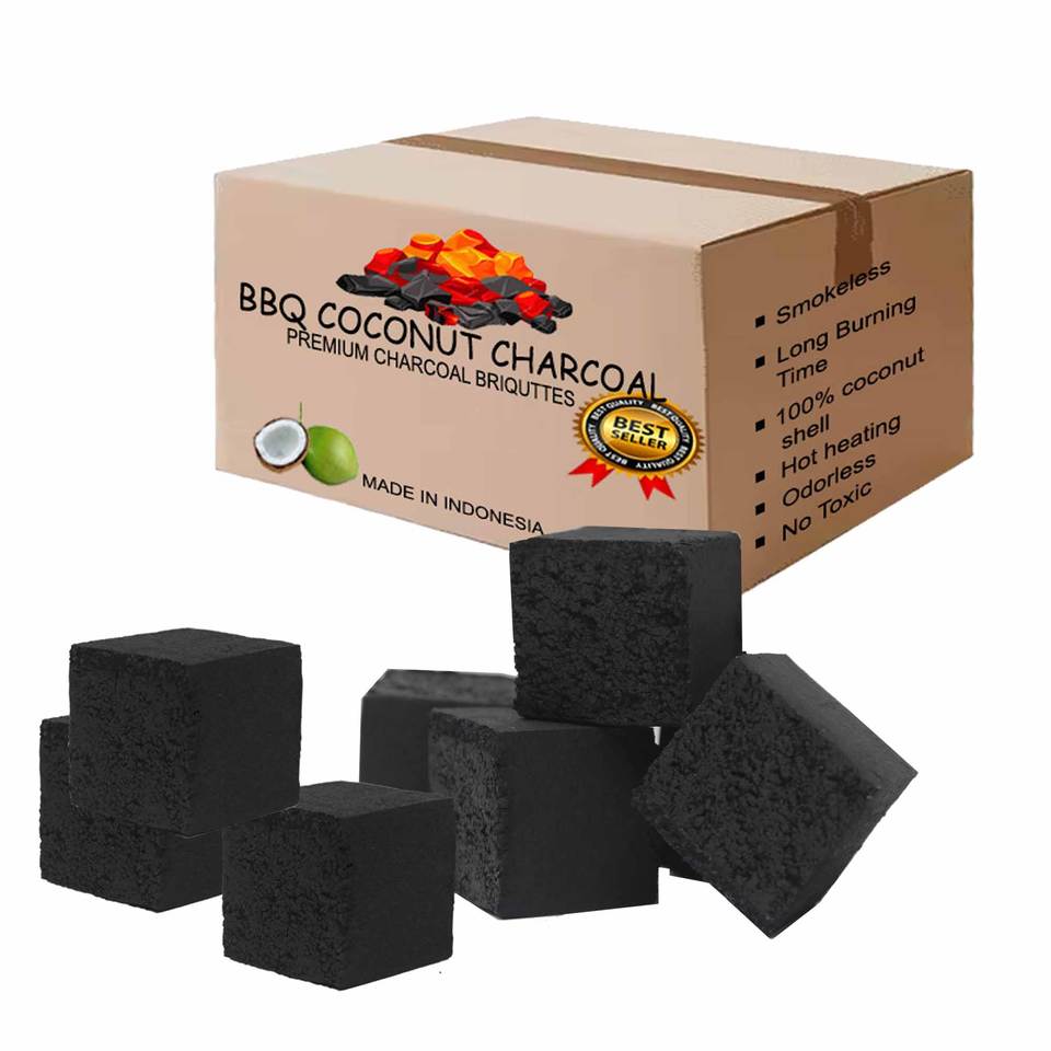 เตาย่างบาร์บีคิวสำหรับกลางแจ้งเกรดพรีเมียมสไตล์ยุโรปถ่านสีดำสำหรับย่างบาร์บีคิวกะลามะพร้าวธรรมชาติวัตถุดิบจากประเทศอินโดนีเซีย