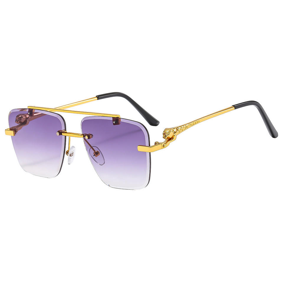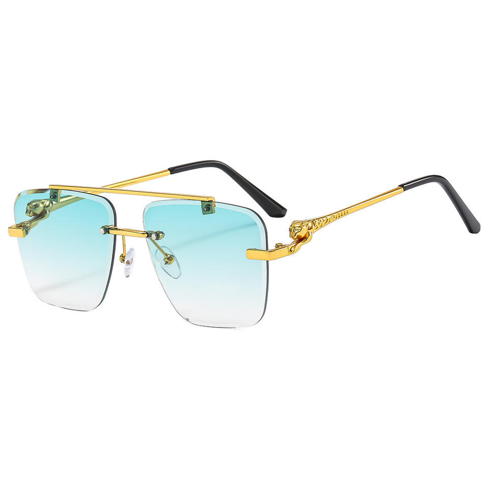 แว่นกันแดดโลโก้เสือชีตาห์ทรงไร้กรอบโลหะ สีขาว น้ำเงิน เขียว ป้องกันรังสียูวี 400 กรอบพีซี สำหรับกิจกรรมกลางแจ้ง วันหยุด ใช้ได้ทั้งชายและหญิง หรูหรา สไตล์ยุโรปและอเมริกา