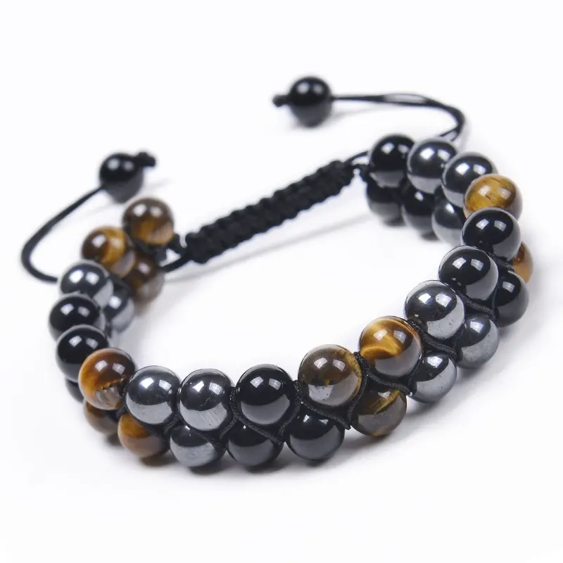 ยุโรปและสหรัฐอเมริกาข้ามพรมแดนร้อนเสือตาอาเกตสร้อยข้อมือผู้ชายทอแม่เหล็กสีดำปรับได้