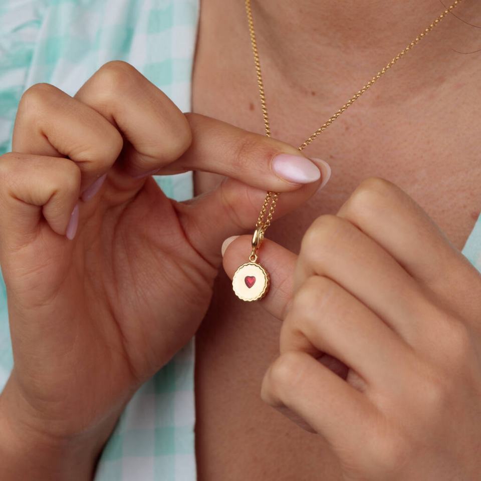 จี้สแตนเลสสตีลชุบทอง 18K สีทองสไตล์ยุโรปอเมริกันสำหรับเด็ก รูปทรงกาน้ำชาประดับเพชรซิคอน ดีไซน์ทันสมัย สไตล์ลำลอง รูปทรงบิสกิต รูปหัวใจ