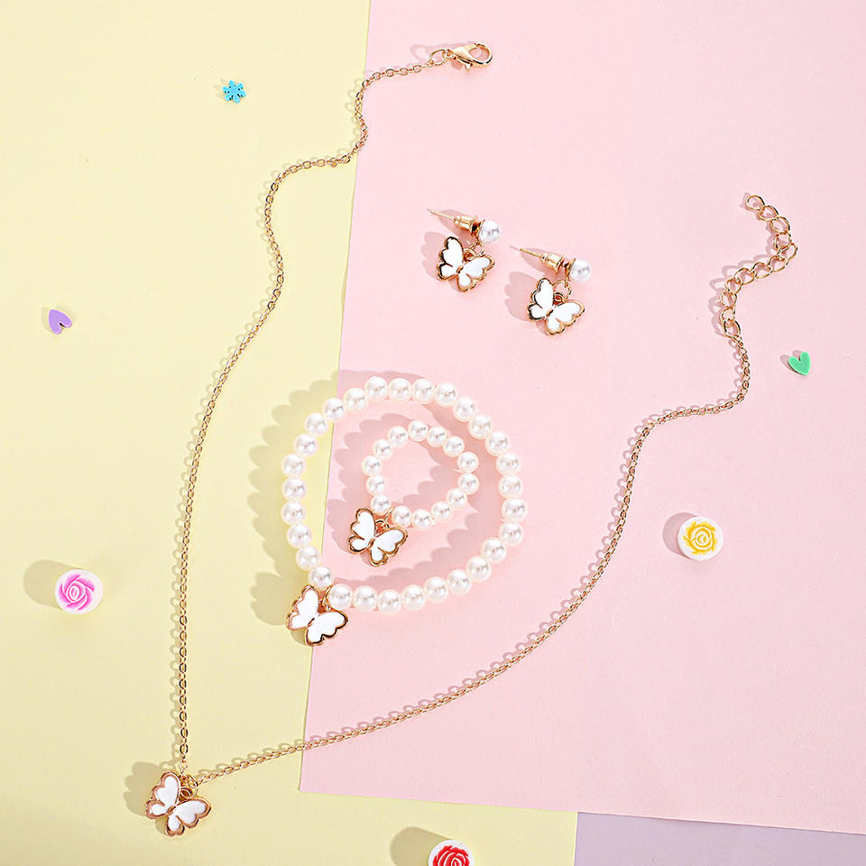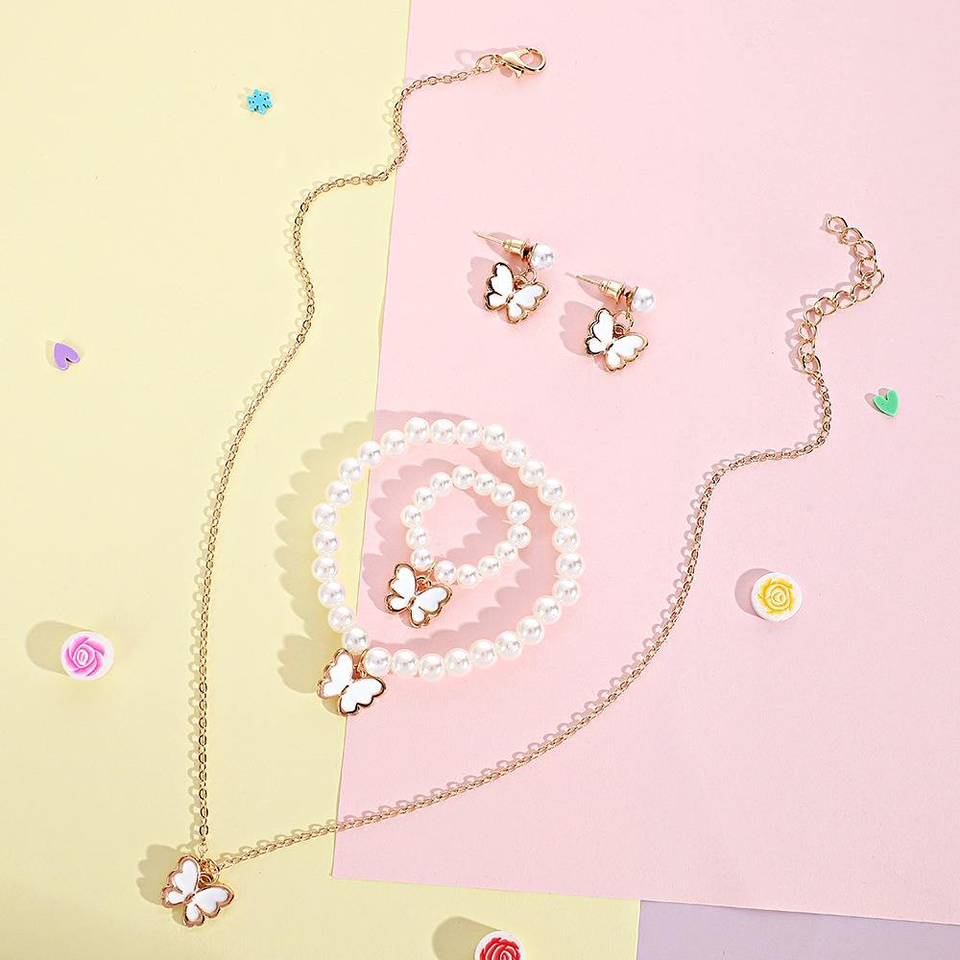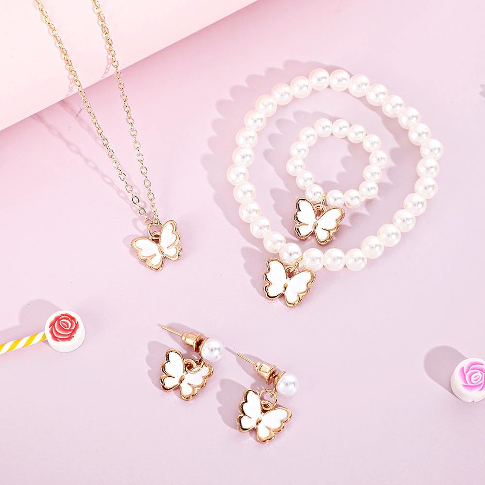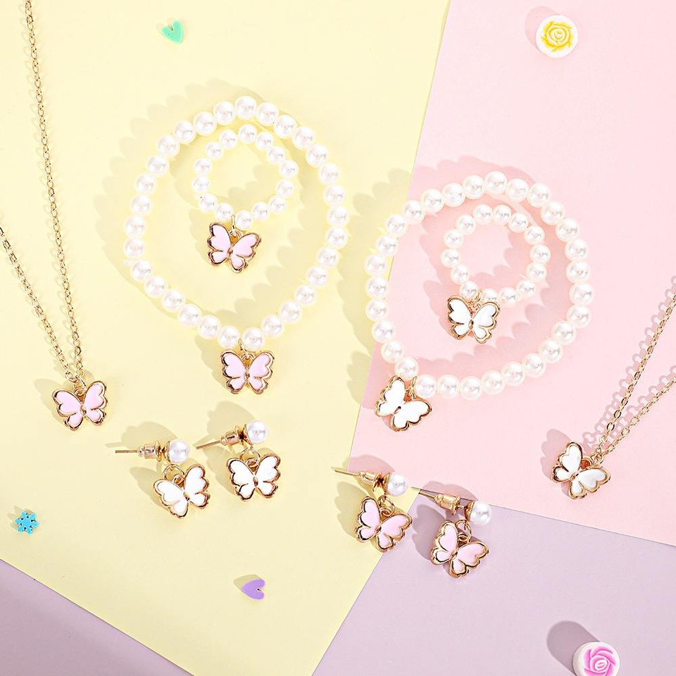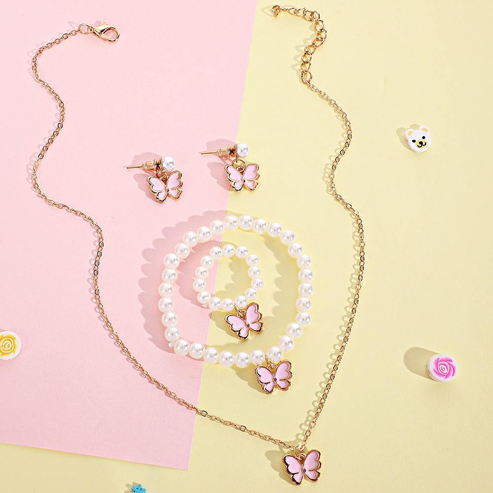 ต่างหูเด็กน่ารักลายดอกไม้ วัสดุโลหะผสมสังกะสี สไตล์ยุโรปอเมริกัน 1 คู่ รุ่น S1 ลายผีเสื้อเล็กสีชมพูแบบหยดน้ำ