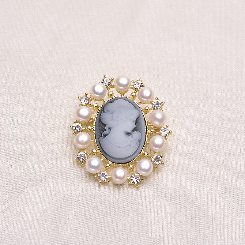 เข็มกลัดสไตล์ยุโรป-อเมริกัน ดีไซน์หรูหรา ประณีต ระดับไฮเอนด์ แบบเรโทร ประดับมุก รูปดอกไม้ ติดหน้าอก สวยงาม แบบ cameo ลายนูน สง่างาม