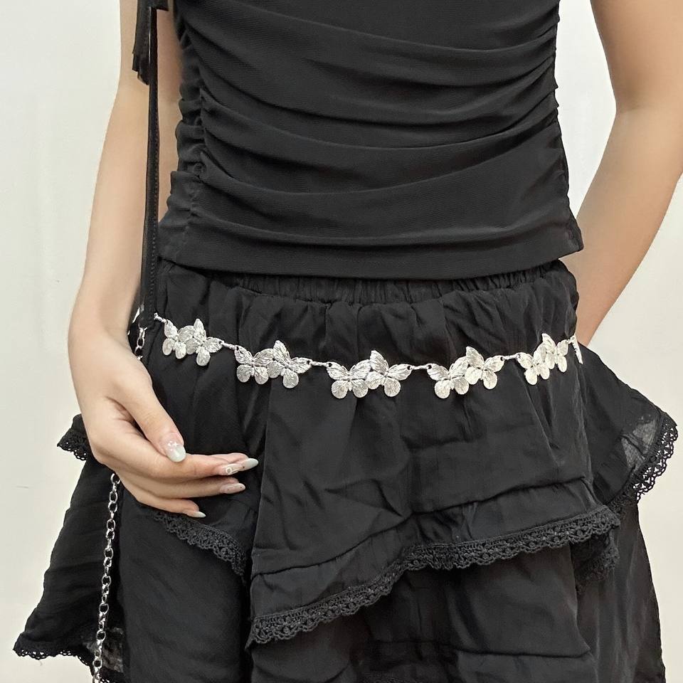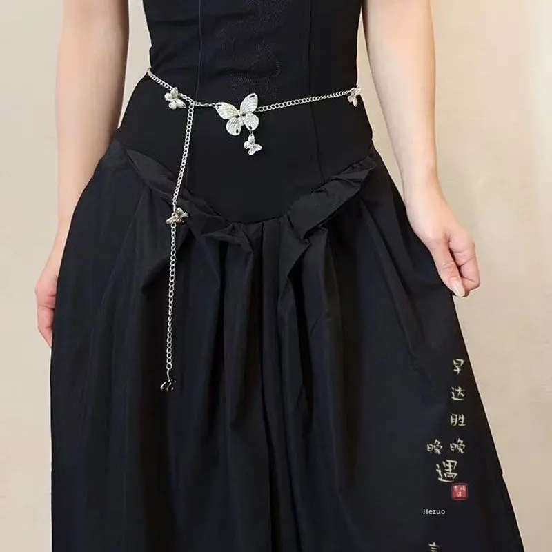 สร้อยคาดเอวแบบพู่ผีเสื้อสไตล์ยุโรปอเมริกัน ยาว 120 ซม. สำหรับผู้หญิง สไตล์ฮิปฮอป ดีไซน์โดดเด่น ประดับด้วยอุปกรณ์ตกแต่งอย่างประณีต
