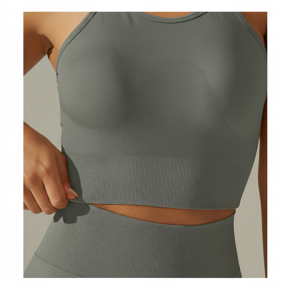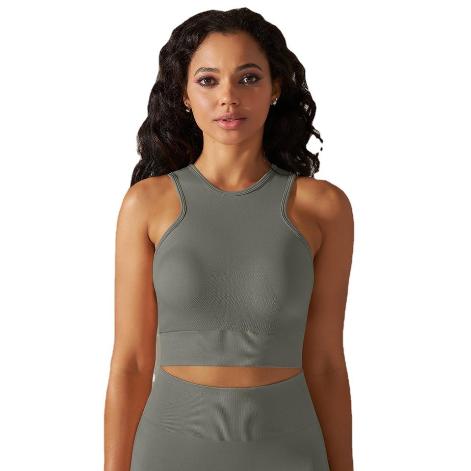 เสื้อโยคะผ้ายืดหยุ่นสูงแนวยุโรปอเมริกันเสื้อกีฬาสีพื้นความยาวปานกลางเสื้อสำหรับใส่วิ่งออกกำลังกาย