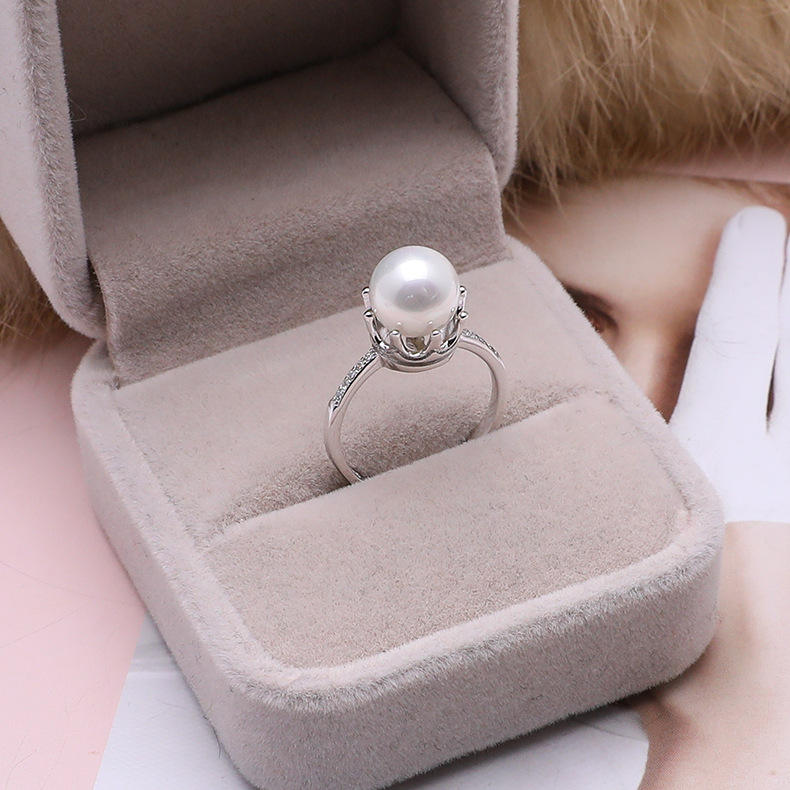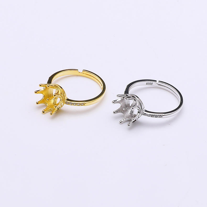แหวนเงินแท้ S925 แบบเปิด ประดับมงกุฎเล็ก สำหรับใส่ไข่มุก 7.5-8.5 มม. สไตล์ยุโรป-อเมริกัน สำหรับผู้หญิง