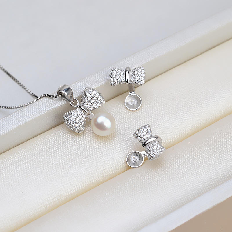 อุปกรณ์ทำเครื่องประดับ DIY สไตล์ยุโรป-อเมริกัน เงินแท้ S925 ชุดจี้ติดหู ดีไซน์โบว์ประดับมุก รุ่นใหม่ทันสมัย ถาดเปล่าสำหรับต่างหู 1334