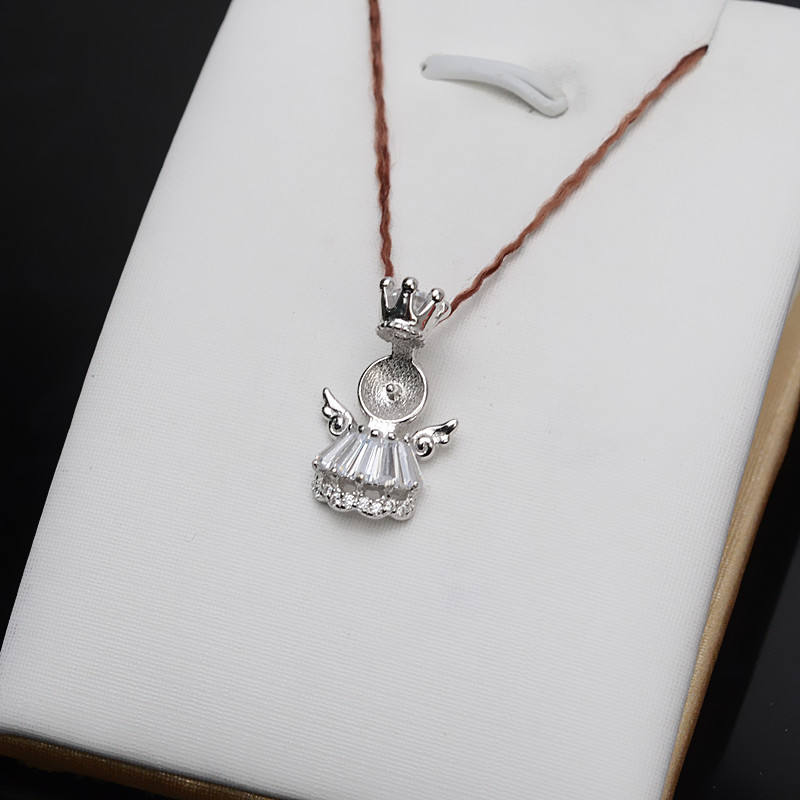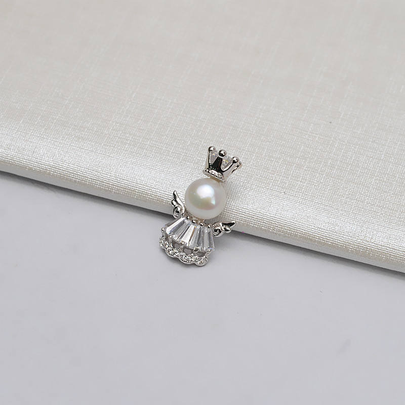 จี้มงกุฎนางฟ้าเงินแท้ S925 สไตล์ยุโรป-อเมริกัน พร้อมถาดไข่มุก 7-7.5 มม. อุปกรณ์ตกแต่งเครื่องประดับ 618
