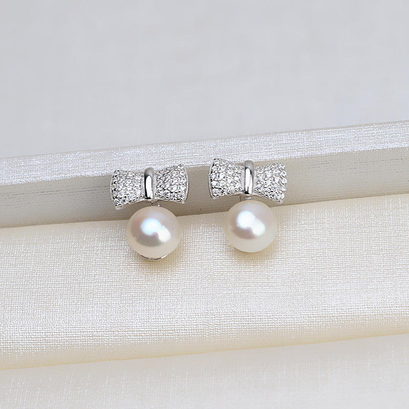 ชุดจี้ติดหูเงินแท้ S925 สไตล์ยุโรป-อเมริกัน ดีไซน์ทันสมัย พร้อมโบว์ประดับมุก สำหรับผู้หญิง อะไหล่เครื่องประดับเปล่าสำหรับทำเครื่องประดับ