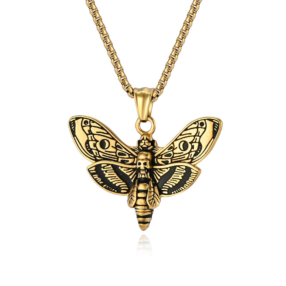 สร้อยคอทองแดงประดับเพชรลายหัวกะโหลกผีผีเสื้อสไตล์ฮิปฮอปยุโรปอเมริกัน ดีไซน์เฉพาะตัว ทันสมัย เหมาะสำหรับทั้งชายและหญิง