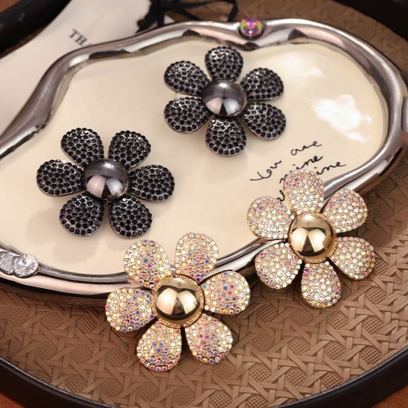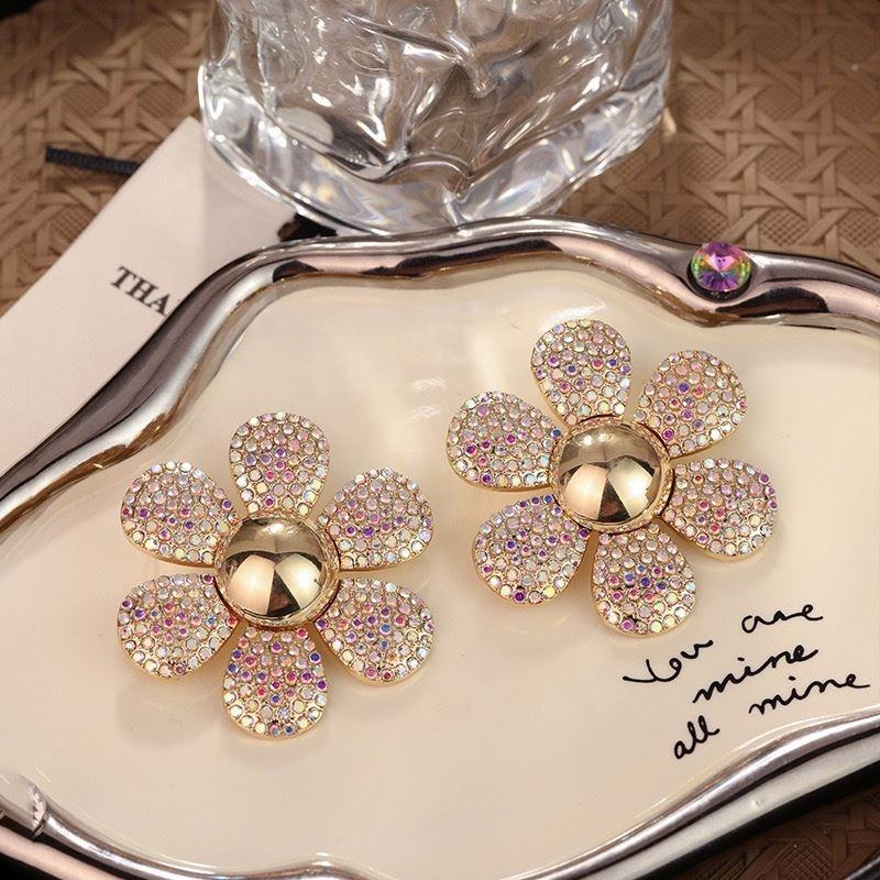 ต่างหูดีไซน์แฟชั่นสไตล์ยุโรปอเมริกัน ลายดอกเดซี่สีสันสดใส ประดับเพชรทรงมงกุฎ ดีไซน์โดดเด่นไม่ซ้ำใคร