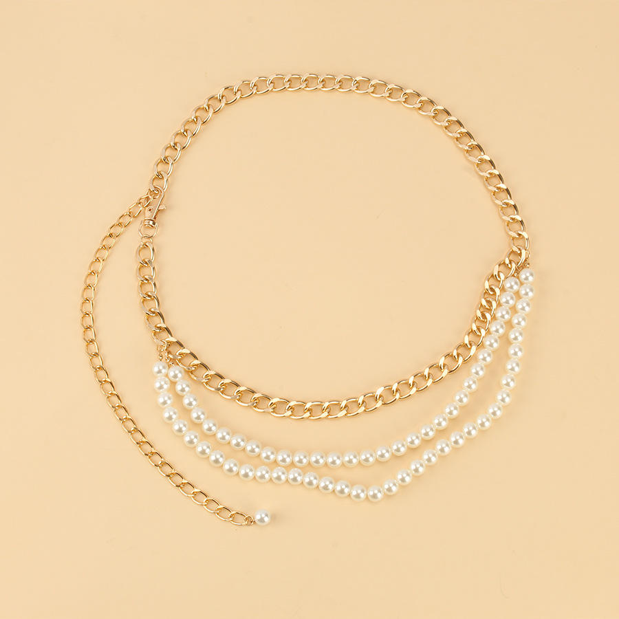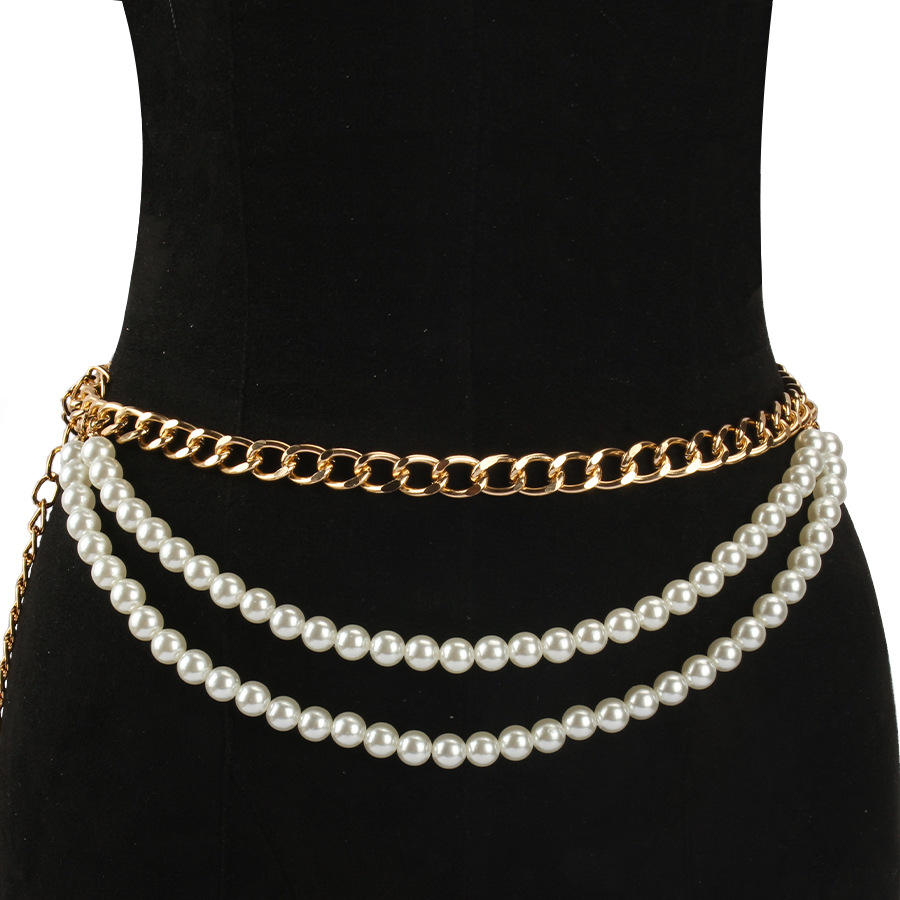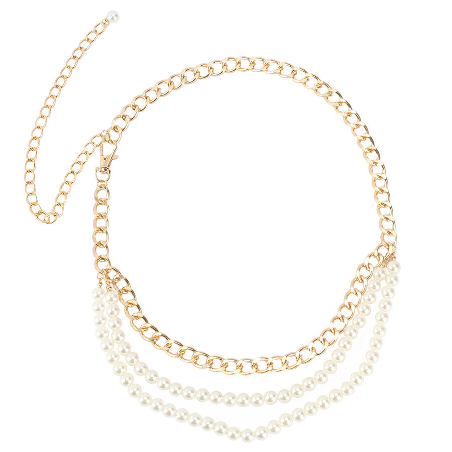 color:Gold pearl waist chain, white pearl waist chain