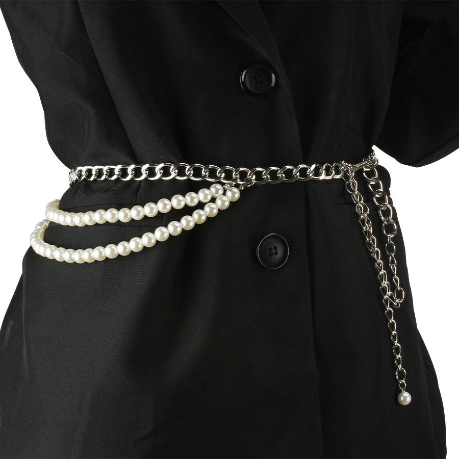 เครื่องประดับเอวแบบมินิมอลสไตล์ยุโรปอเมริกัน โซ่ไข่มุกหลายชั้น สไตล์สตรีท ย้อนยุค ฮิปฮอป บอดี้เชน
