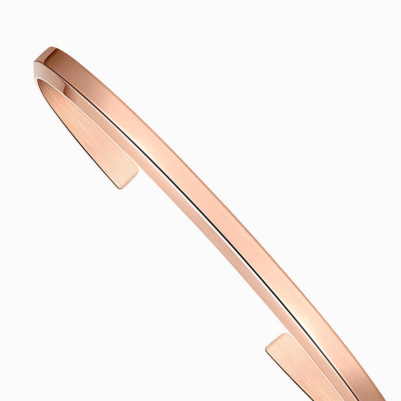 กำไลข้อมือสแตนเลสรูปตัวซีปรับได้สำหรับผู้ชายผู้หญิงแฟชั่นสไตล์ยุโรปและอเมริกันสีโรสโกลด์แบบเรียบ