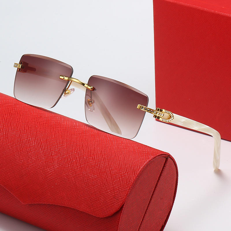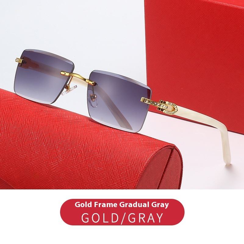 European American Fashion Sunglasses for Men New Gold with Diamond-Encrusted Rimless Edge-Cut Plate-Leg Sunglasses