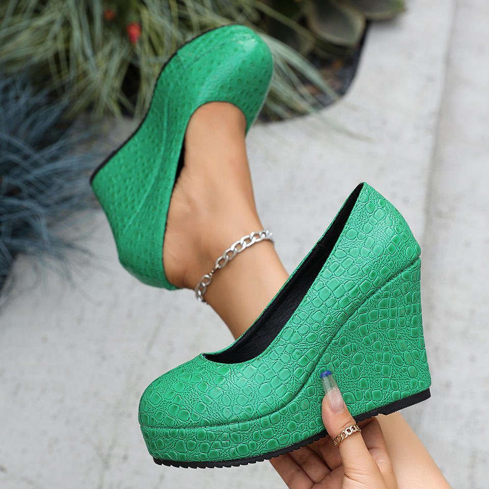 รองเท้าส้นเตารีดแบบสวมสำหรับผู้หญิง รุ่นใหม่สไตล์ยุโรปอเมริกัน ไซส์ใหญ่ เหมาะสำหรับฤดูร้อน พื้นหนา ปากตื้น