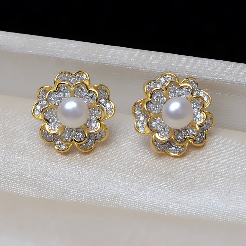 อุปกรณ์ตกแต่งทรงดอกไม้สไตล์ยุโรป-อเมริกัน ทำจากเงินแท้ S925 ต่างหูแบบวงแหวน 5-6 วง 7-8 วง ประดับมุกและลูกปัดกลวง 3 มม.