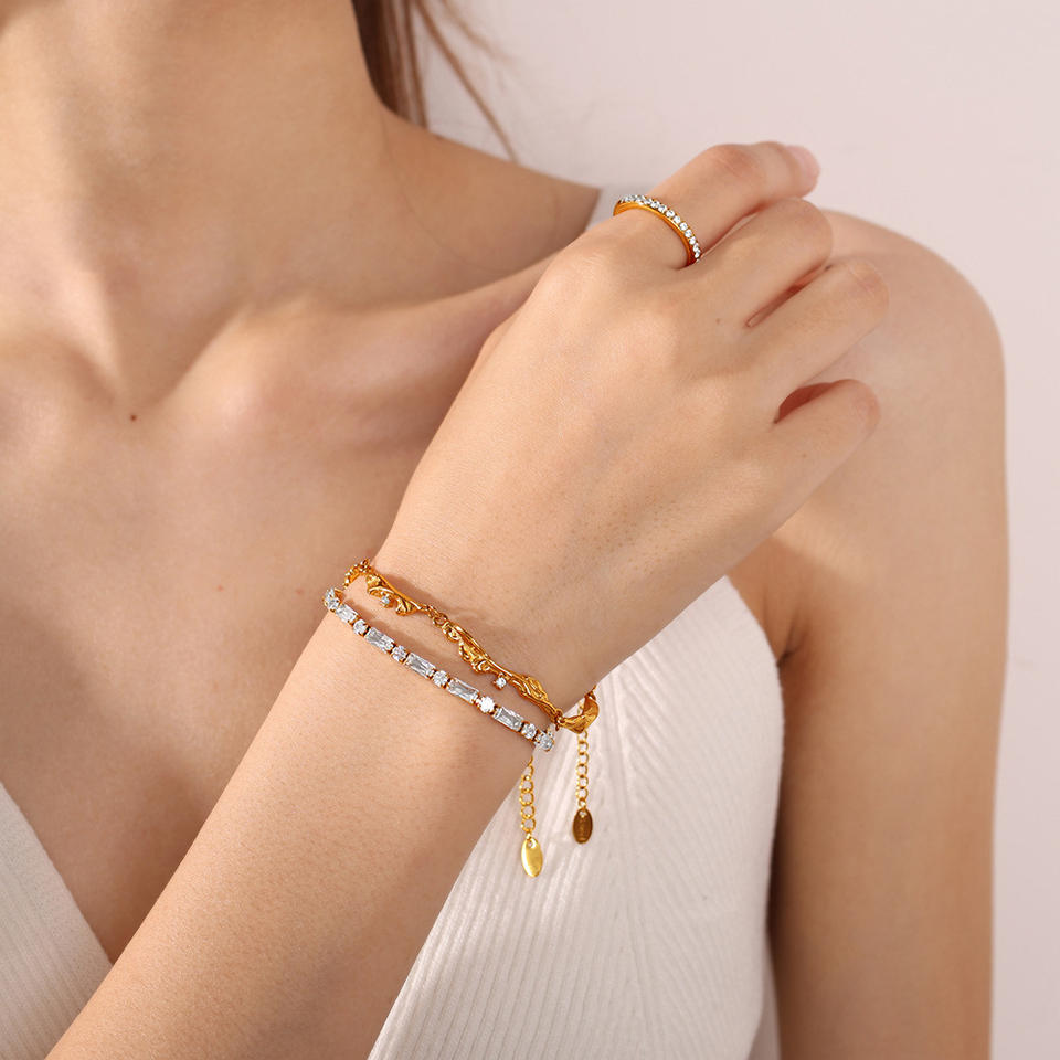 กำไลข้อมือลายทองสไตล์ยุโรปอเมริกัน ประดับเพชรเม็ดเล็ก ปรับขนาดได้ ของขวัญเครื่องประดับ โลหะผสมสังกะสี ดีไซน์เรขาคณิต
