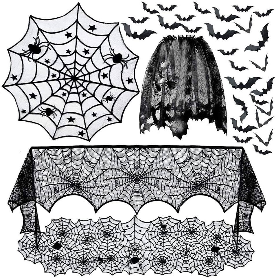 ชุดตกแต่งงานปาร์ตี้ฮาโลวีนแบบชาวยุโรปอเมริกันชุดผ้าปูโต๊ะใยแมงมุมและผ้าปูโต๊ะลายใยแมงมุม
