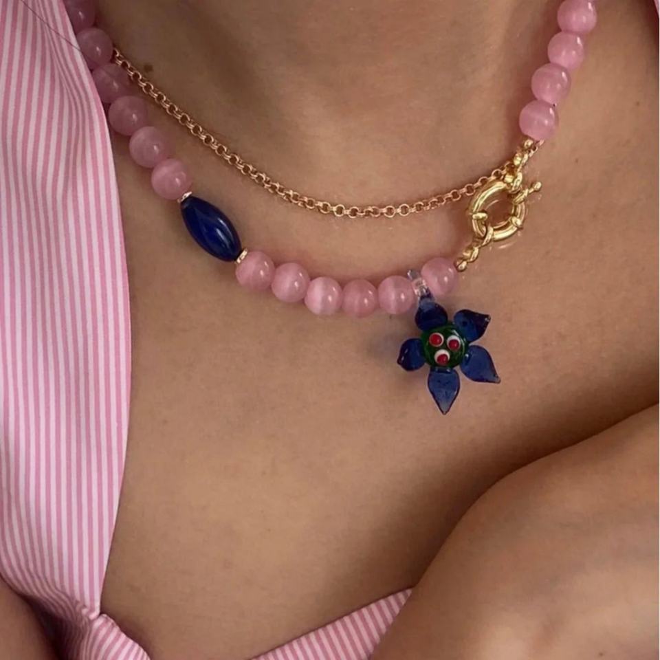 ลูกปัดแก้วลายดอกเดซี่น่ารักเรียบง่ายสไตล์ยุโรปอเมริกัน ทำด้วยมือ ประดับเพชร โซ่ทองเหลือง สำหรับผู้หญิง บล็อกเกอร์ ชาวพุทธ