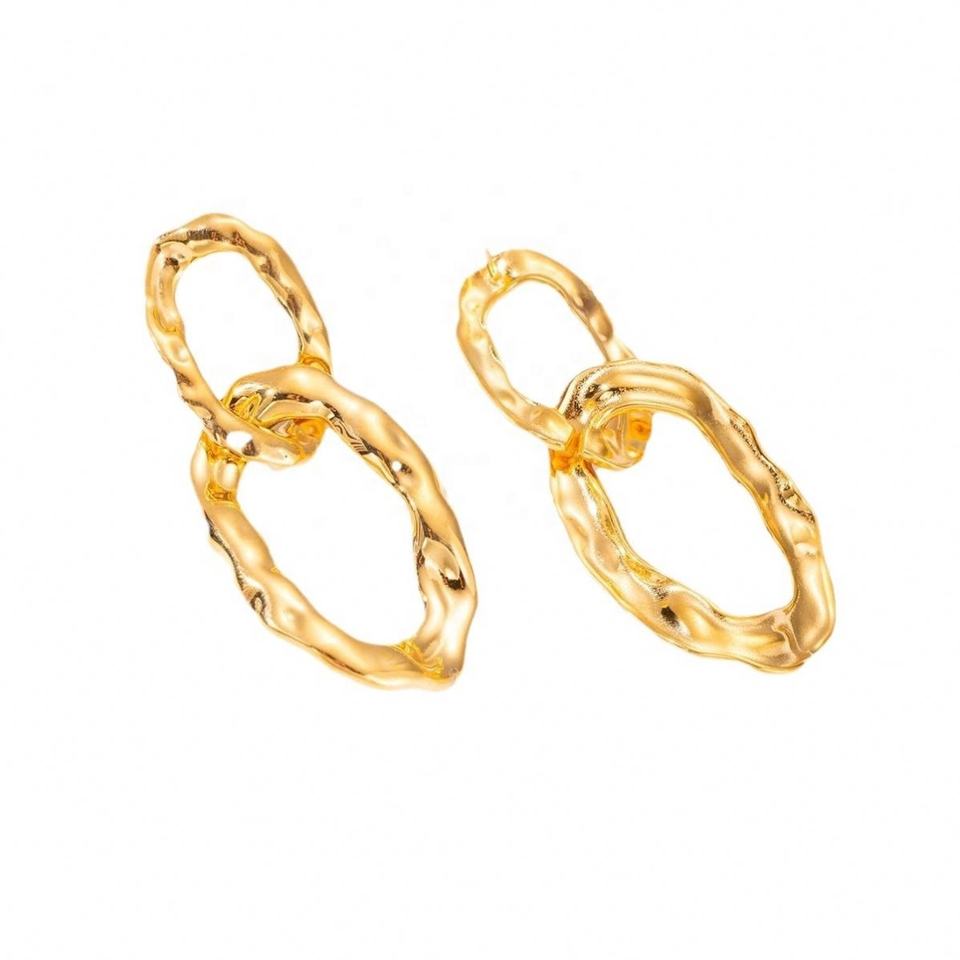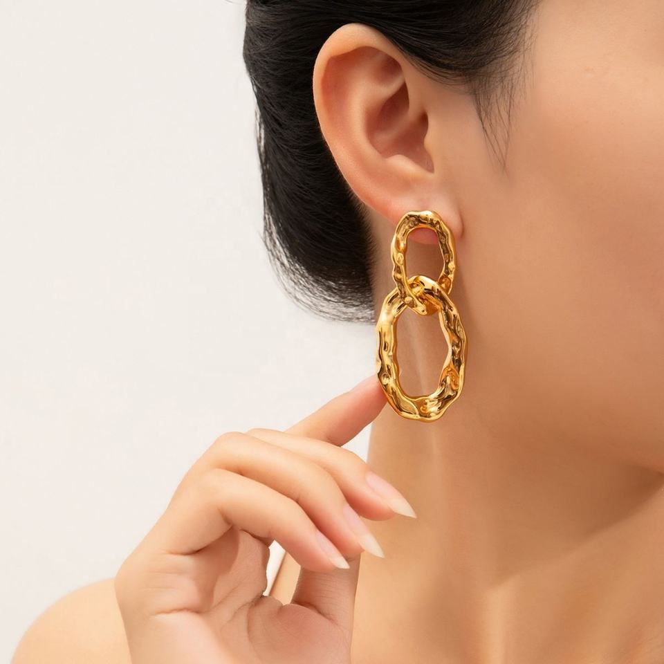 ต่างหูสแตนเลสสตีลหรูหราสไตล์ยุโรปอเมริกัน ดีไซน์เรียบง่าย ทรงห่วงไม่สมมาตร ประดับเพชรแบบฝังขอบ ทันสมัย