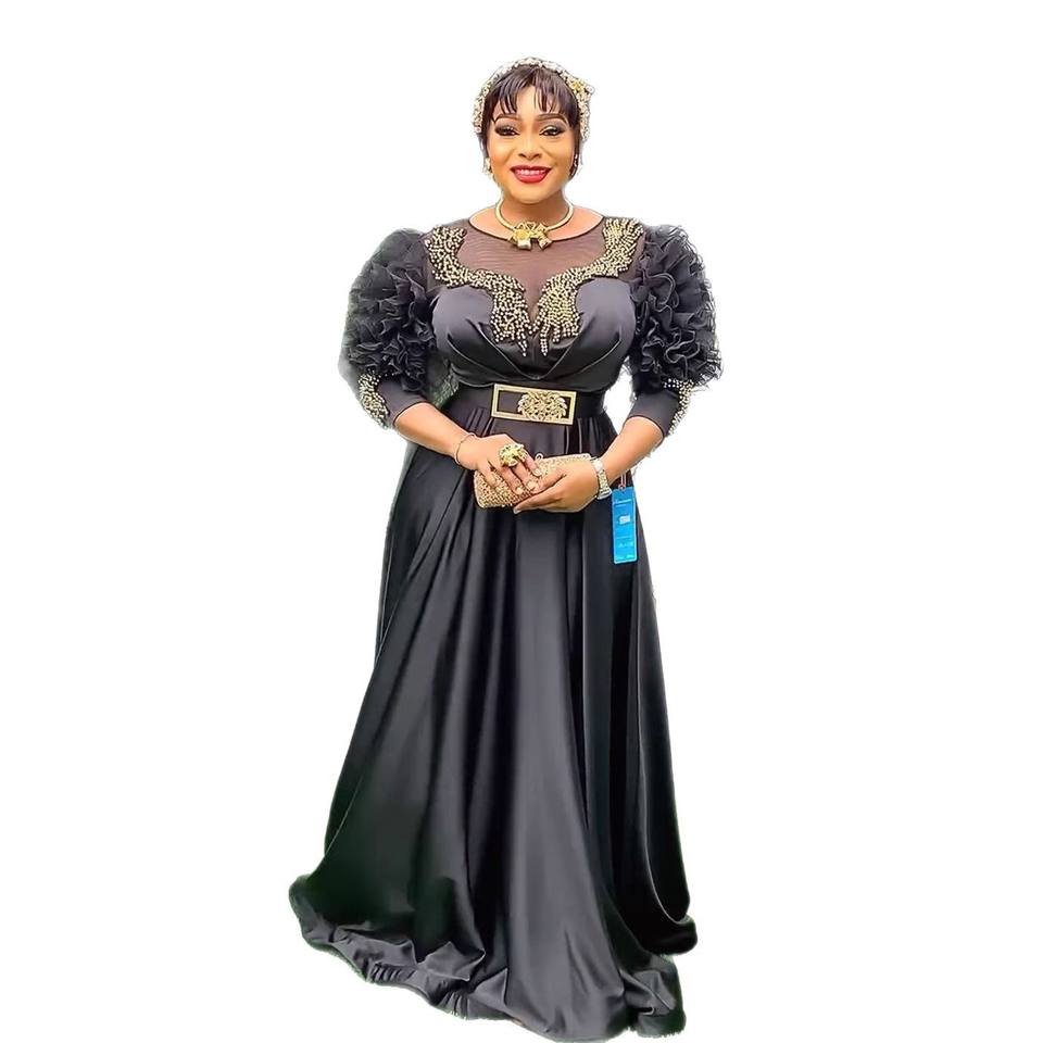 ชุดราตรีทรงเอวสูงสไตล์ยุโรป-อเมริกันสำหรับผู้หญิง แฟชั่นไซส์ใหญ่แบบใหม่ แขนลูกไม้ สำหรับงานเลี้ยง