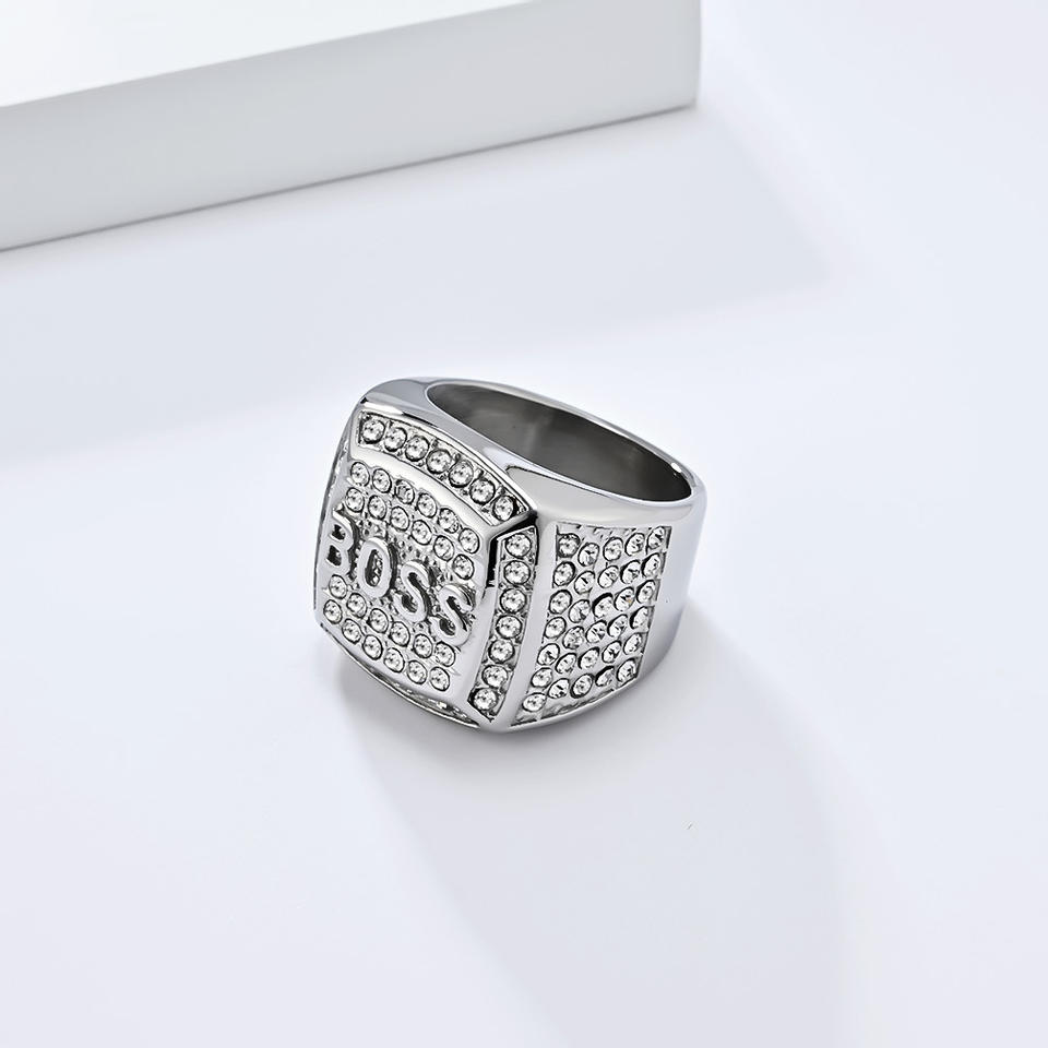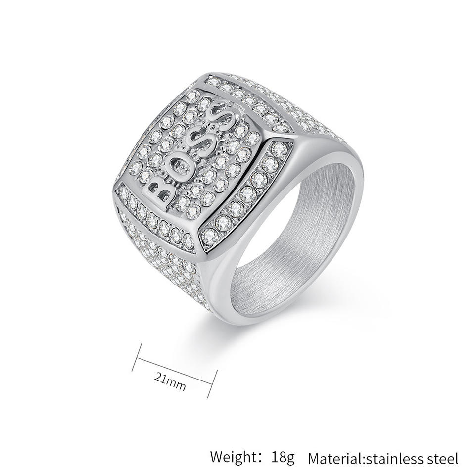 แหวนฮิปฮอปเคลือบทองทำจากสแตนเลสสตีลสไตล์ยุโรปอเมริกันประดับเพชรดีไซน์ตัวหนังสือเครื่องประดับเฉพาะกลุ่ม