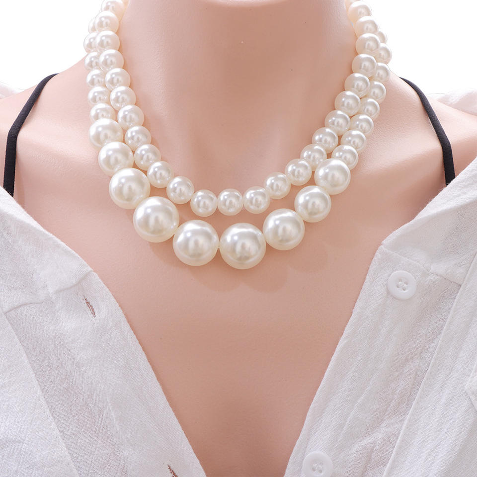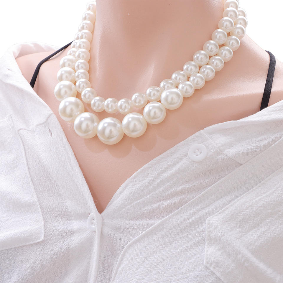 สร้อยคอโชคเกอร์หลายชั้นไข่มุกเทียมสไตล์ยุโรปอเมริกันสำหรับผู้หญิง เครื่องประดับสำหรับงานปาร์ตี้