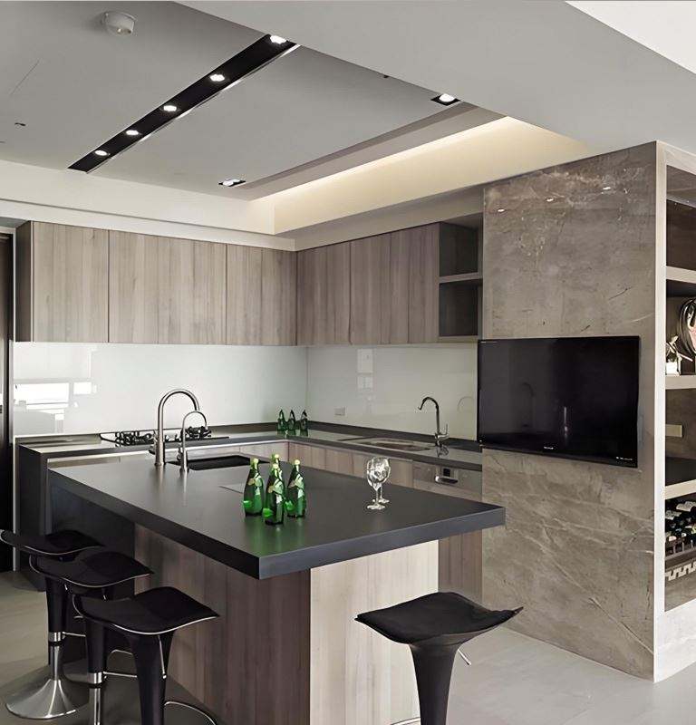 ตู้ครัวหรูสไตล์ยุโรป-อเมริกัน เฟอร์นิเจอร์ไม้จริงทันสมัย แบบเกาะกลางเดี่ยว สั่งทำพิเศษ สีเมลามีนเงา