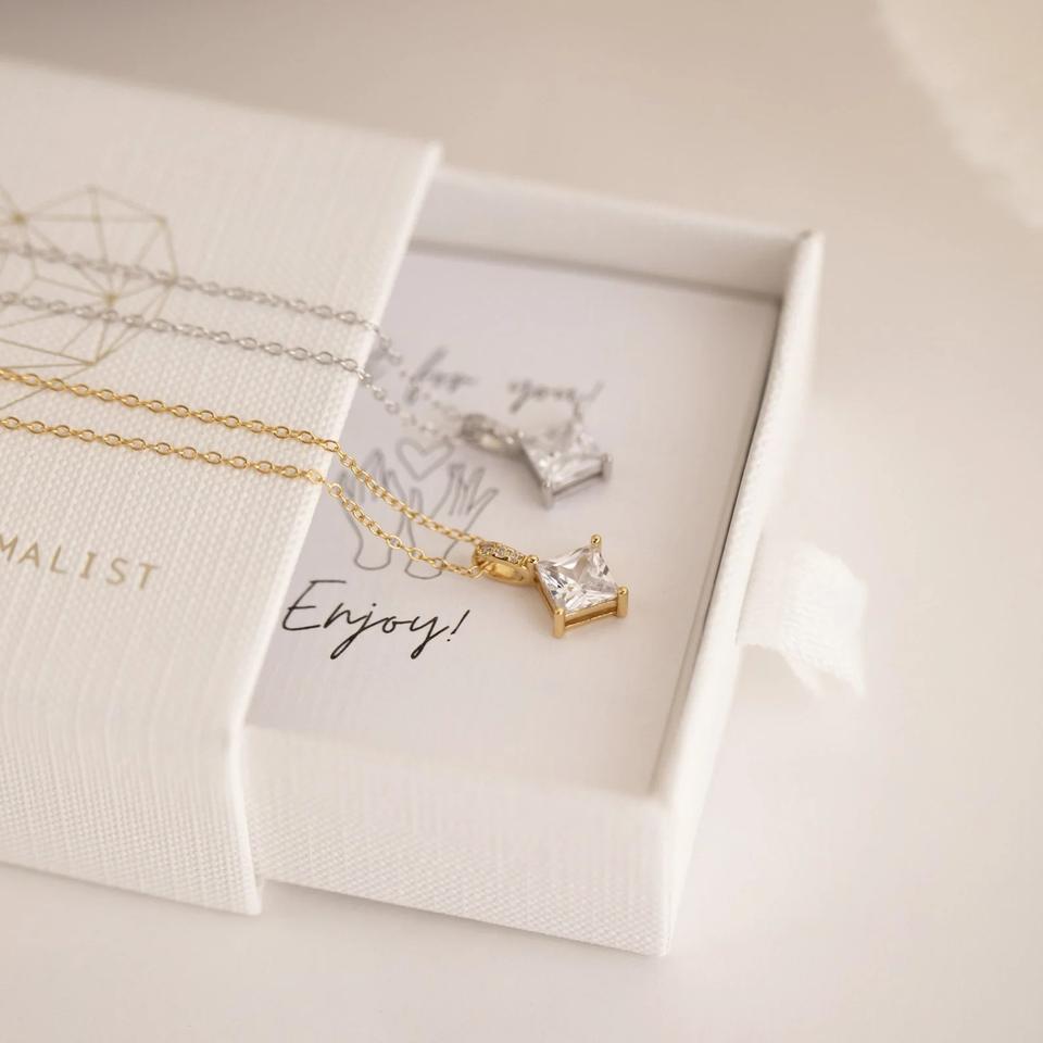 สร้อยคอจี้เพชรทรงสี่เหลี่ยมหรูหราสไตล์ยุโรป-อเมริกัน ดีไซน์เรียบง่าย ให้ความรู้สึกไฮเอนด์ สร้อยคอคริสตัลประดับกระดูกไหปลาร้า