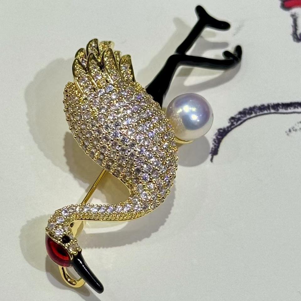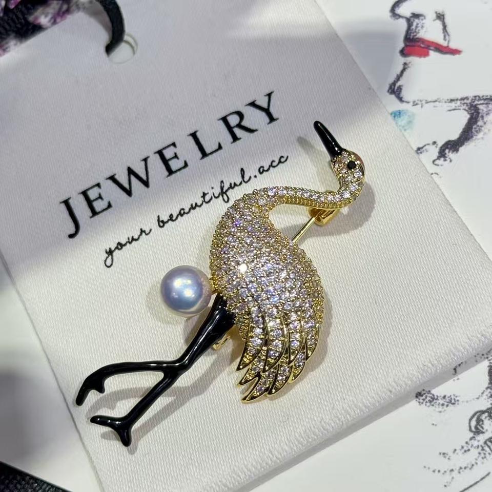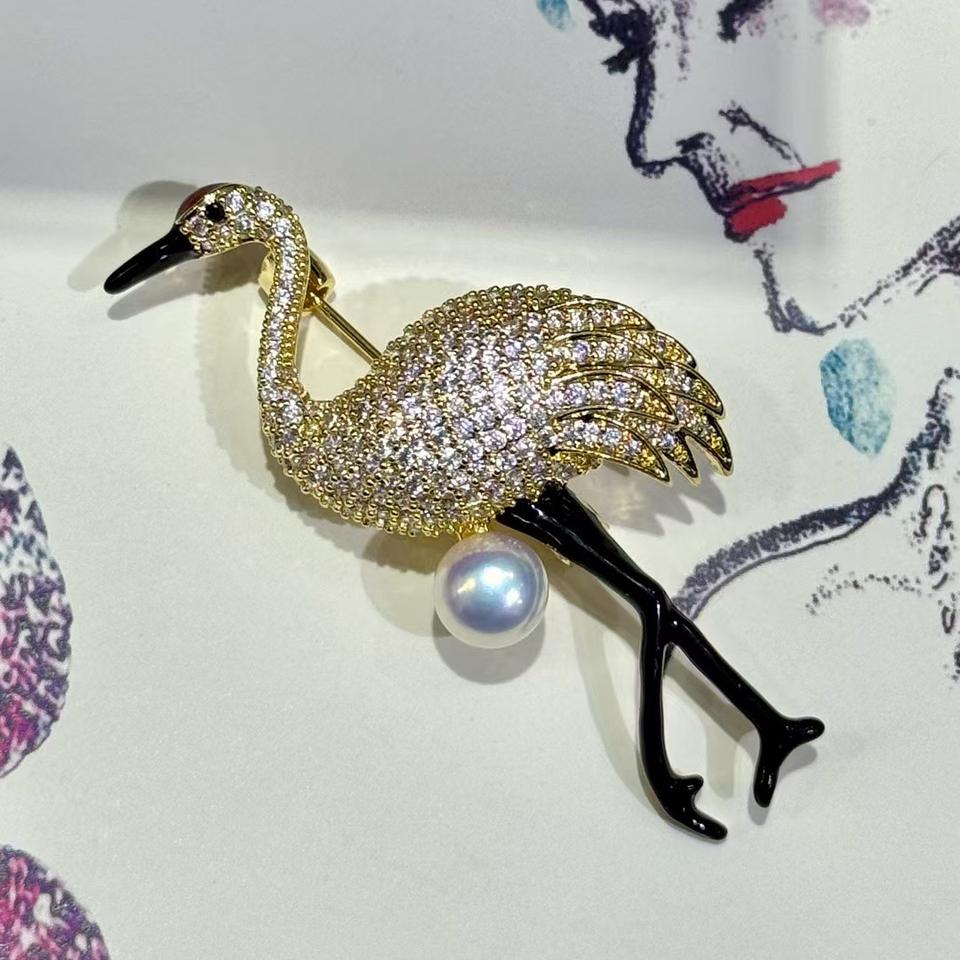 เข็มกลัดฟลามิงโกสามมิติสไตล์ยุโรป-อเมริกัน หรูหรา ประดับเพชรคุณภาพสูง ชุบทองแดง ดีไซน์ดอกไม้ติดหน้าอก แฟชั่นทันสมัย