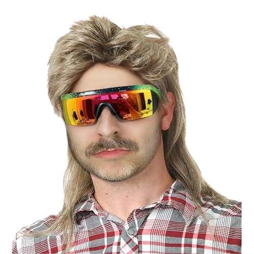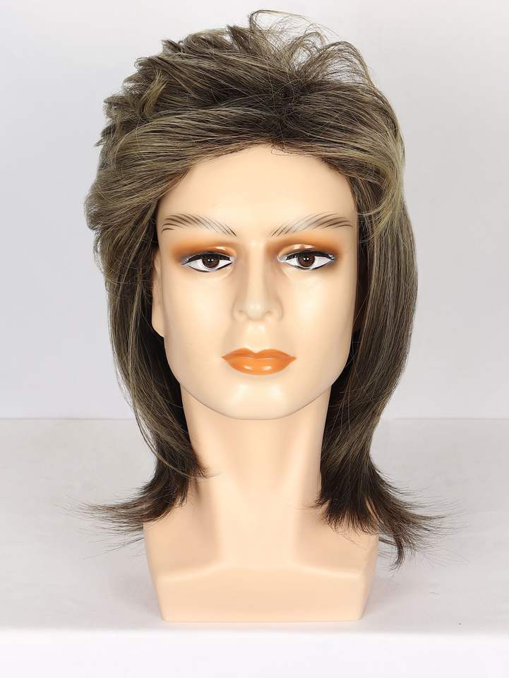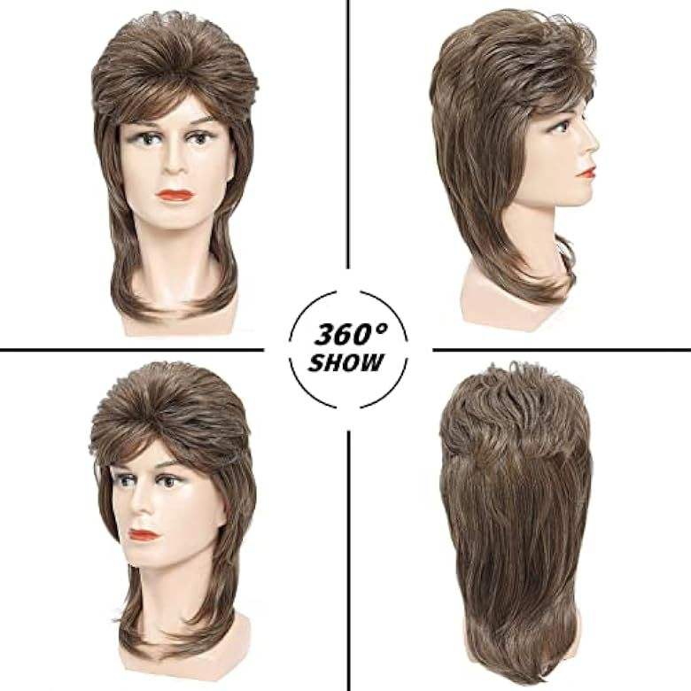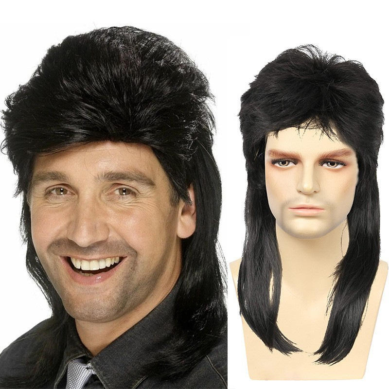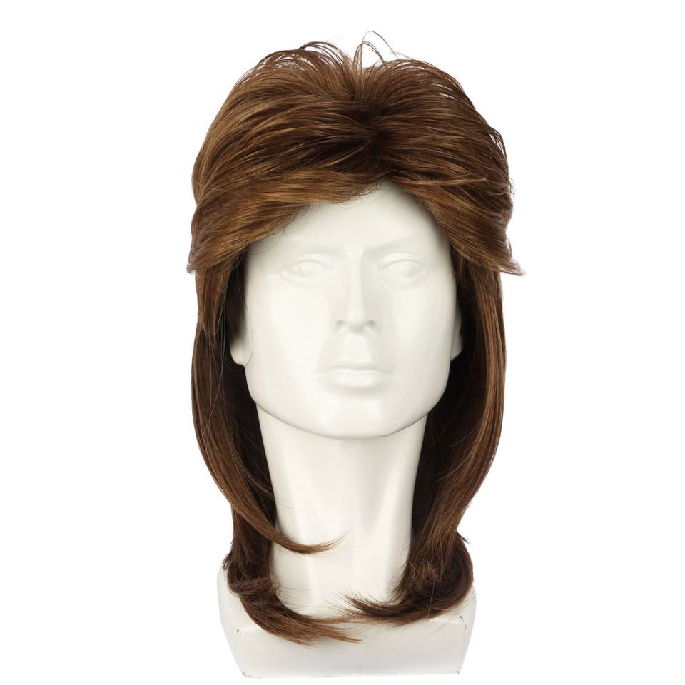 European American Men's 80s Rock Style Mullet Head Wig Shaggy Short Curly Chemical Fiber Hair Set Small Cap Straight Lacy Wig