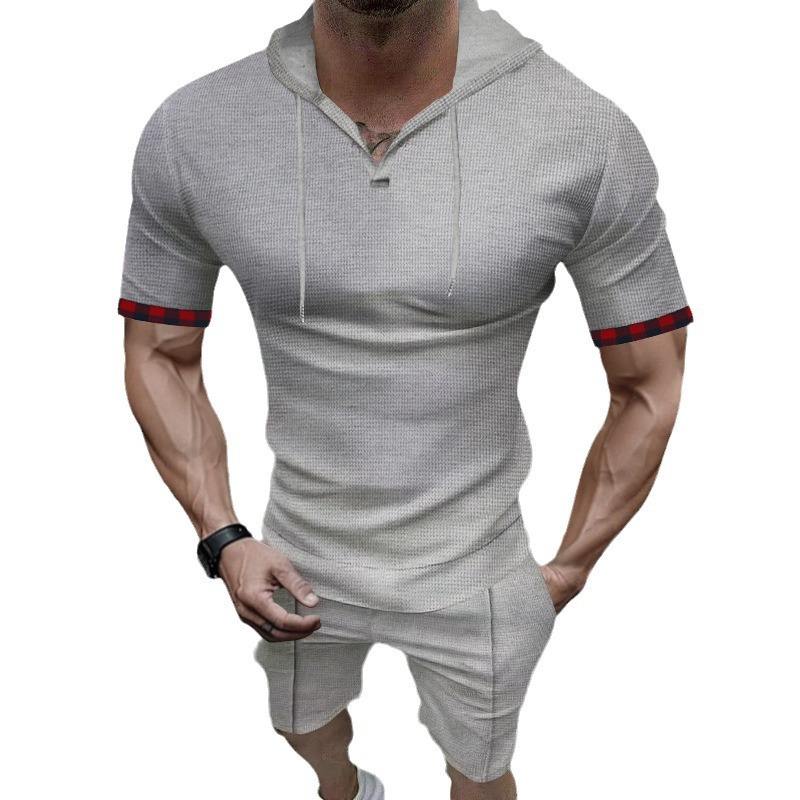 เสื้อยืดมีฮู้ดผู้ชายสไตล์ยุโรปอเมริกัน แขนสั้น ลำลอง สปอร์ต สีขาว โพลีเอสเตอร์ รุ่น DF24ZY-3