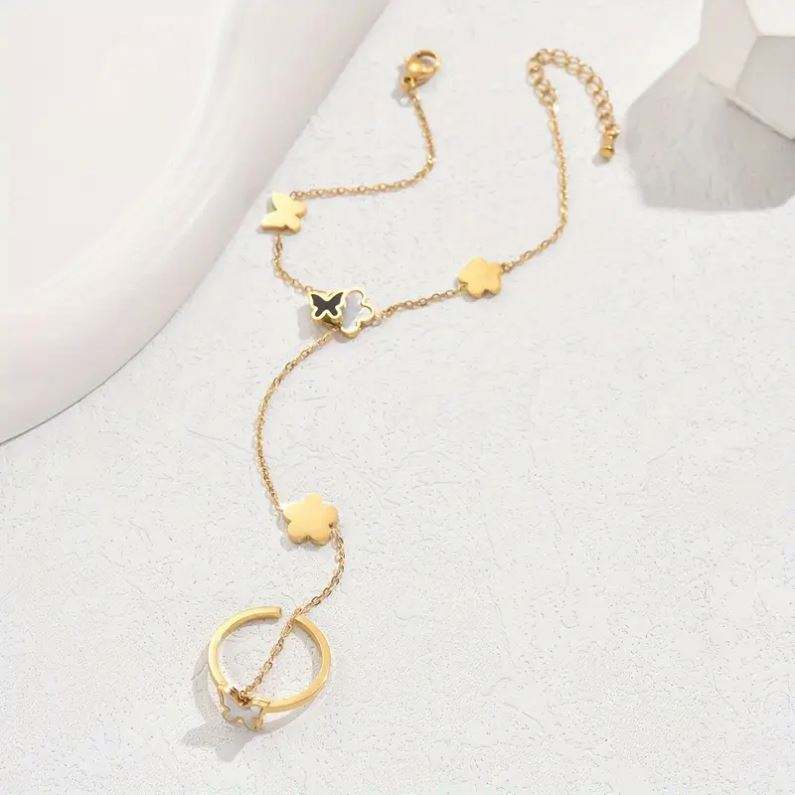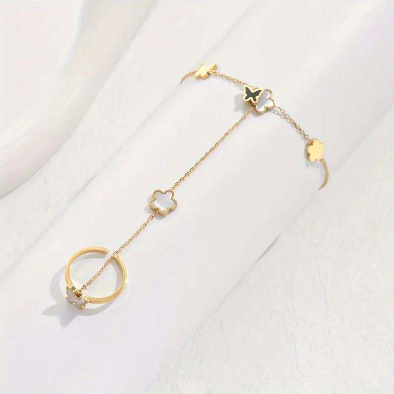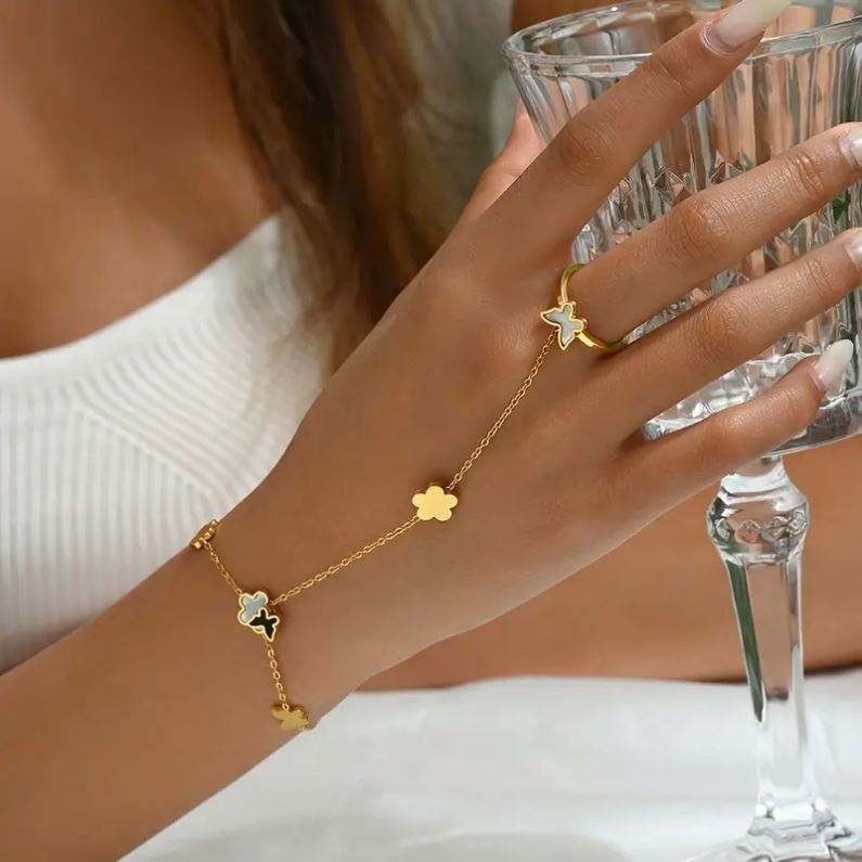 European American New Personalized Stainless Steel Hand Decoration Pearl Butterfly Finger Bracelet Hand Chain for Women