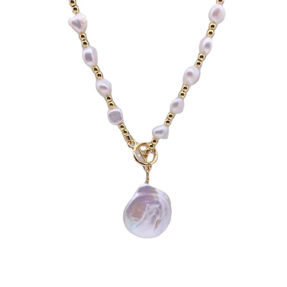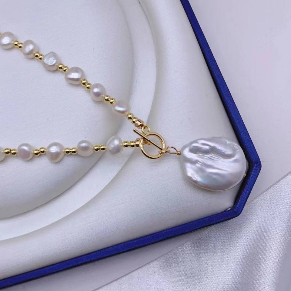 สร้อยคอมุกทรงไม่สมมาตร 7-8 มม. สไตล์ยุโรป-อเมริกัน หรูหราเบาๆ แบบบาโรก สำหรับเป็นของขวัญวันเกิดหรือวันวาเลนไทน์สำหรับผู้หญิง