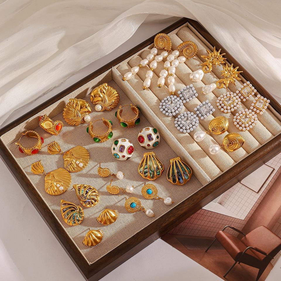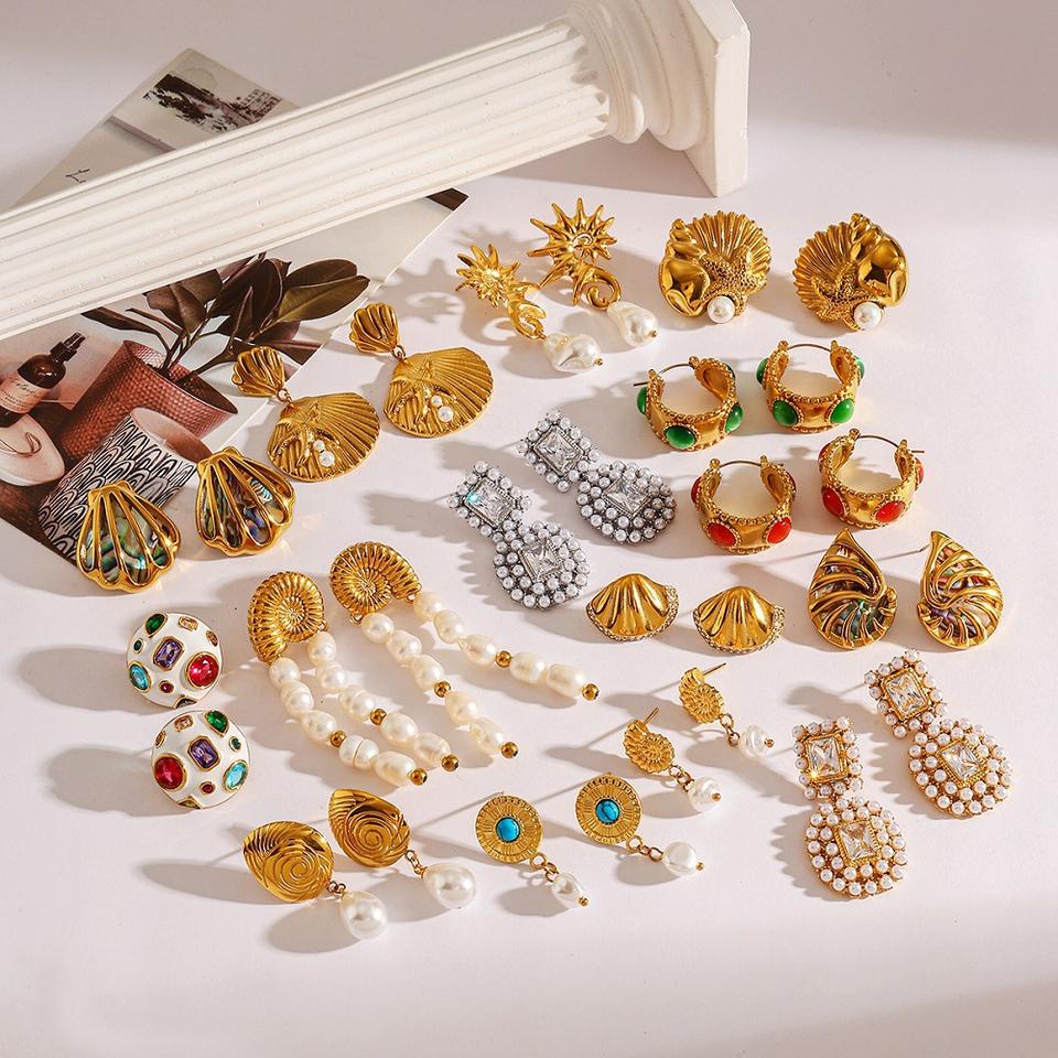 ต่างหูทรงเรขาคณิตสไตล์ยุโรปอเมริกันแบบโบราณ ชุบทอง รูปทรงเปลือกหอย ทำจากโลหะผสมสังกะสี เครื่องประดับแฟชั่น