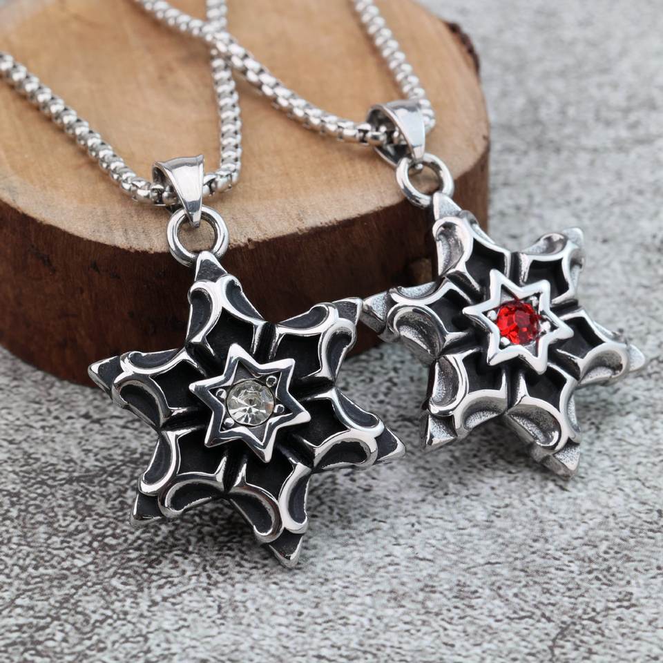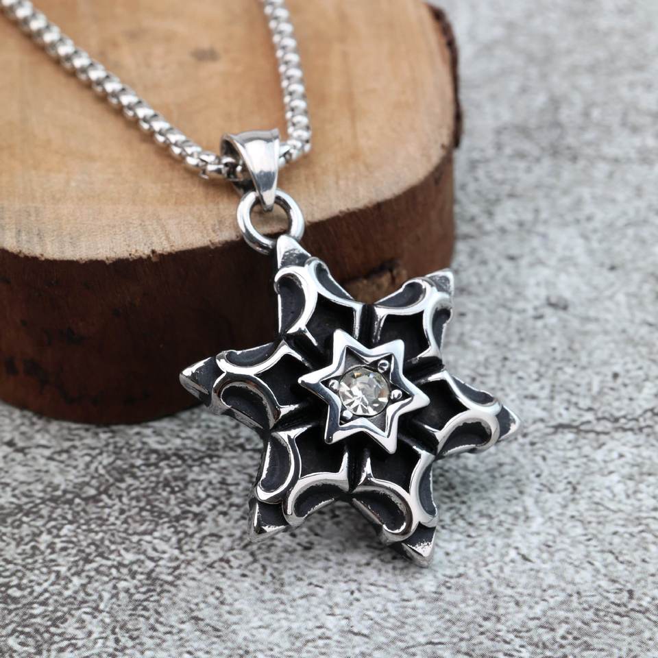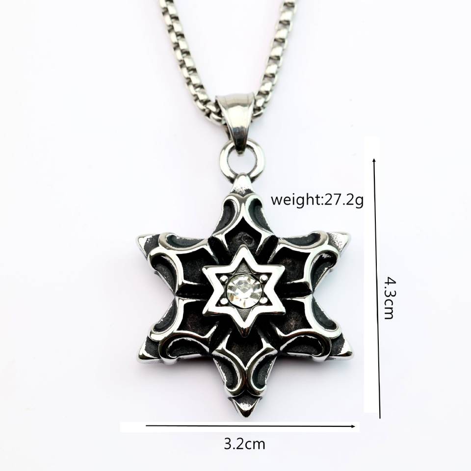 จี้สแตนเลสสไตล์ยุโรปอเมริกันย้อนยุคสำหรับผู้ชาย ประดับอัญมณีรูปดาวหกแฉก เหมาะสำหรับสวมใส่ทุกวัน