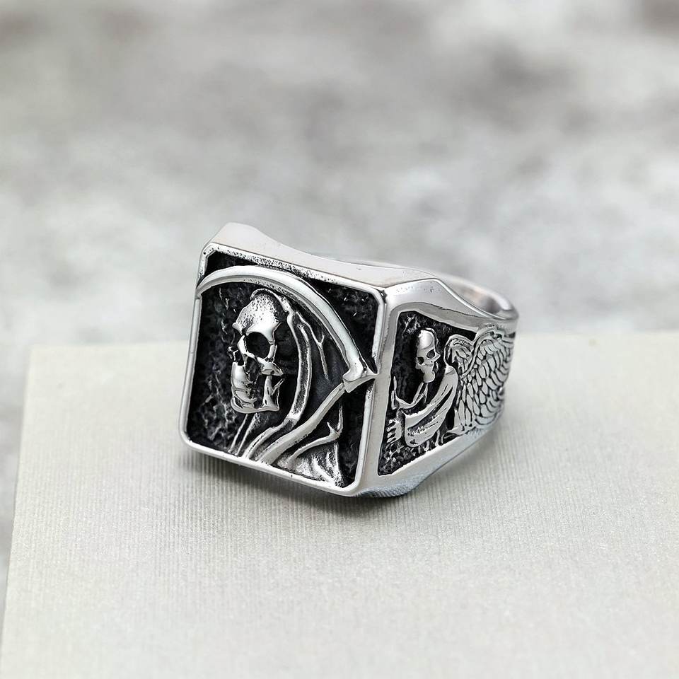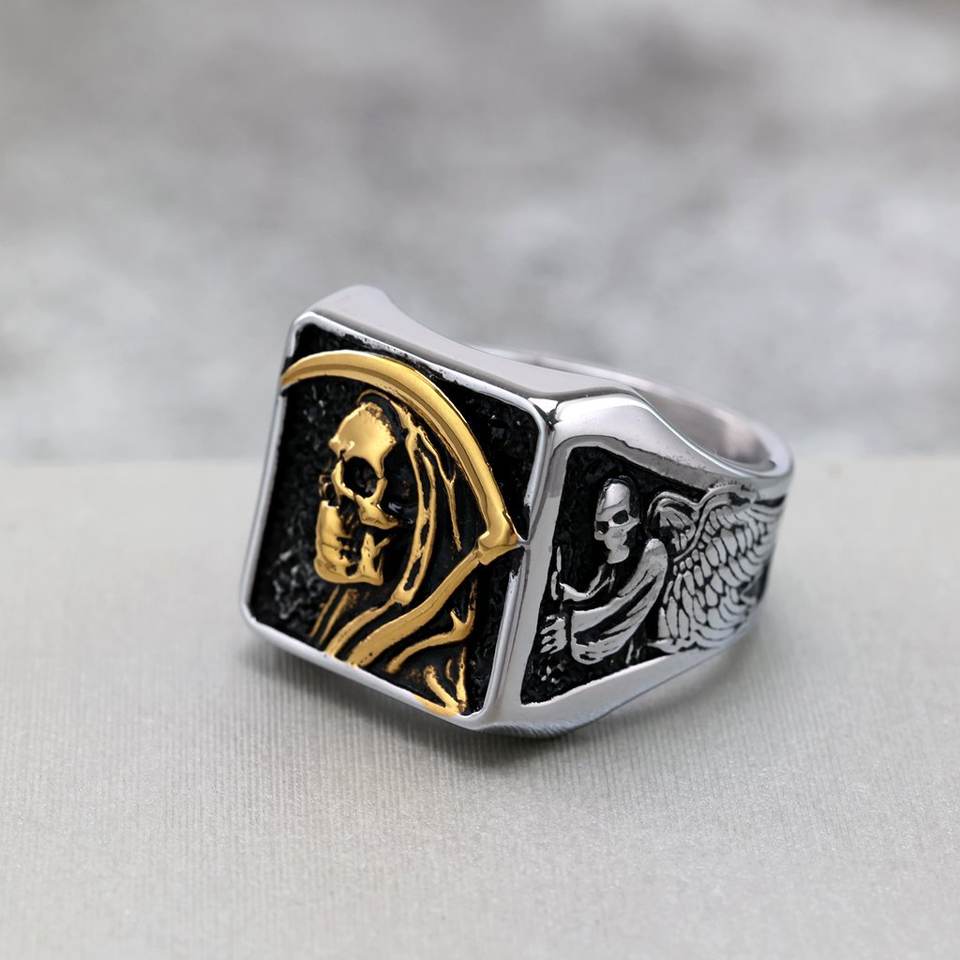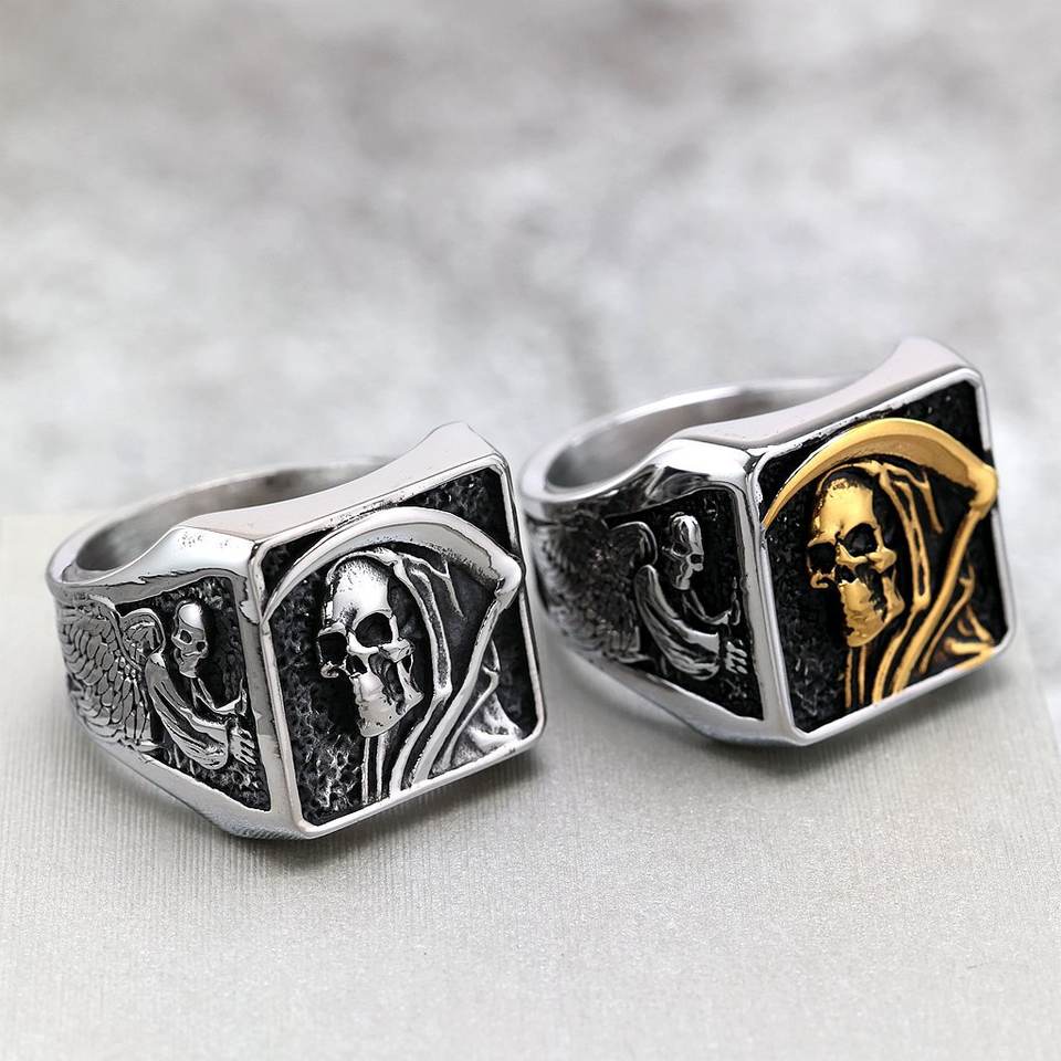 ยุโรปอเมริกันเรโทรสแตนเลสสตีลพังก์แหวนกริมรีปเปอร์สกัลฮิปฮอปเครื่องประดับฮาโลวีน 07305