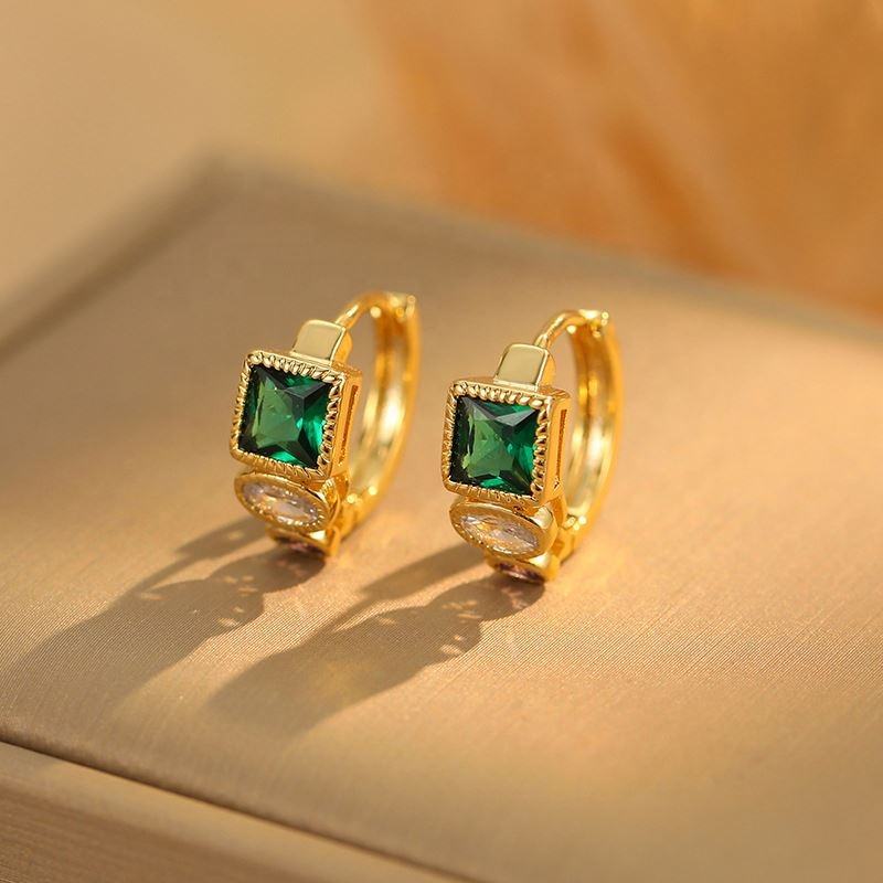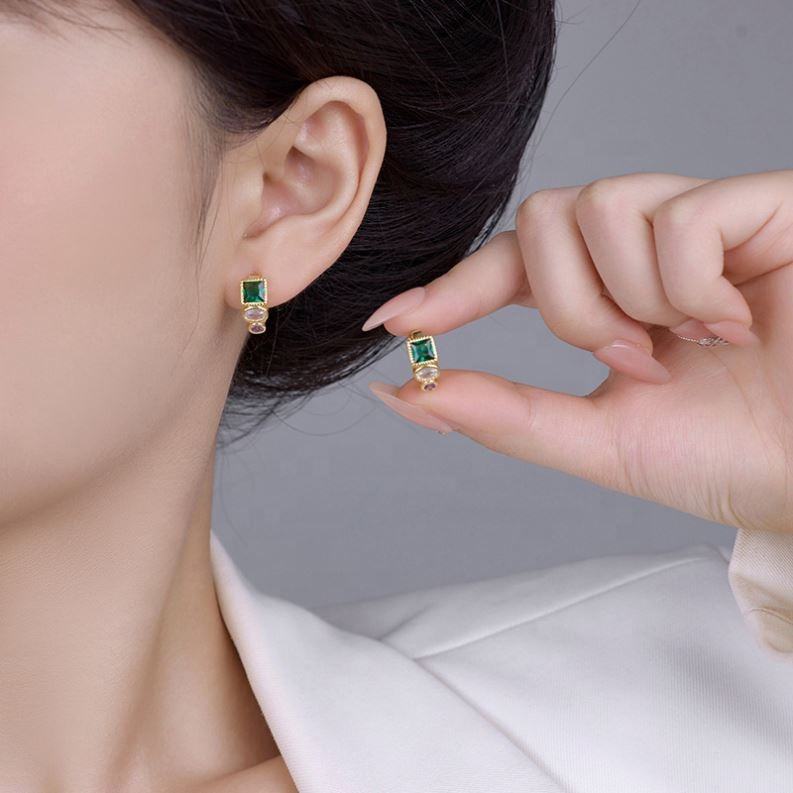 ต่างหูทรงตัว C ชุบทอง 18K สไตล์ยุโรปอเมริกันย้อนยุค ประดับเพชรซิร์คอนขนาดเล็ก ดีไซน์เรขาคณิต เหมาะสำหรับเป็นของขวัญ