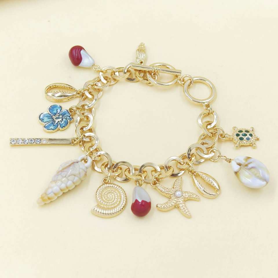 จี้เปลือกหอยทำจากอัลลอยผสมข้ามพรมแดนขายส่งสร้อยคอมุกสีทองหรูหราสไตล์ยุโรปอเมริกันโรแมนติก