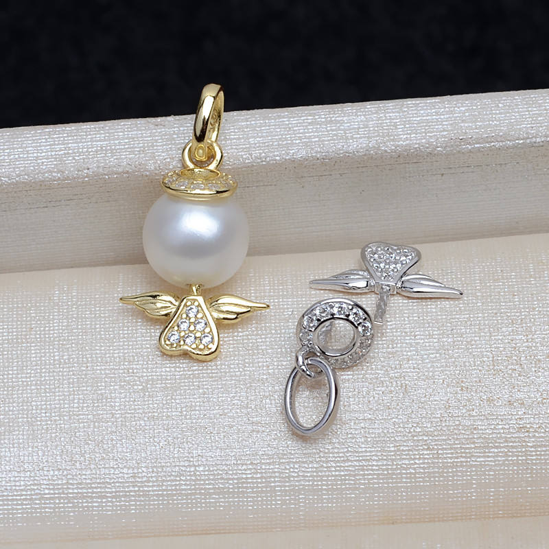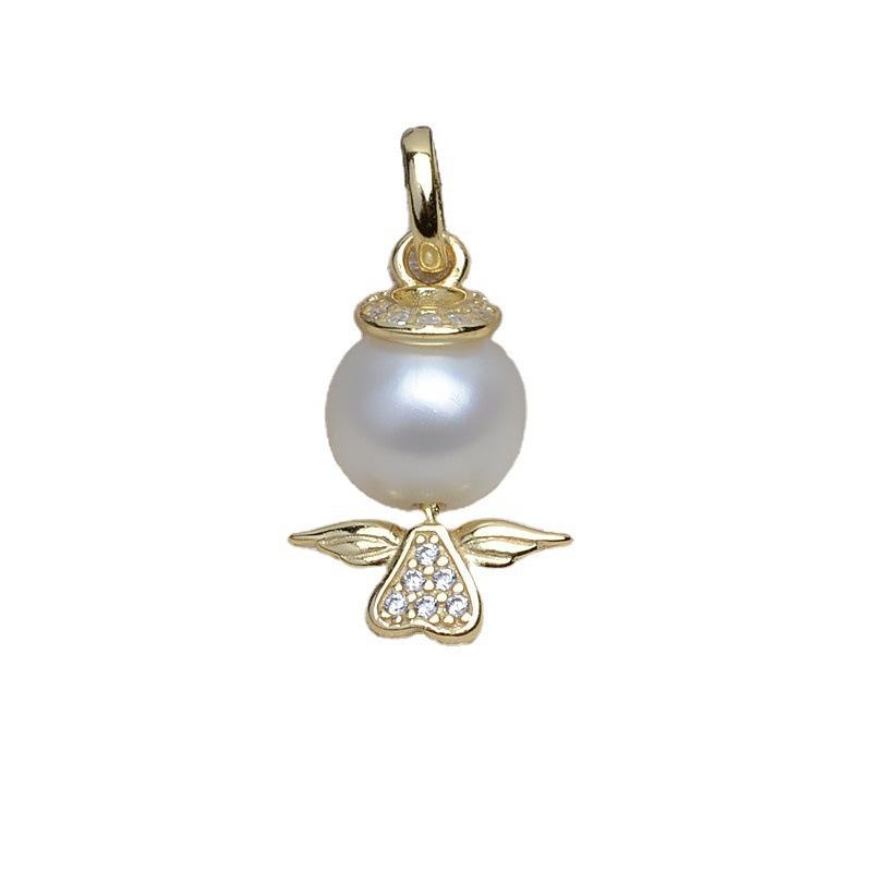 จี้เงินแท้ S925 รูปนางฟ้า สไตล์ยุโรป-อเมริกัน สำหรับผู้หญิง งานแฮนด์เมด ประดับมุก 7-10 มม. อุปกรณ์ DIY สำหรับทำเครื่องประดับ