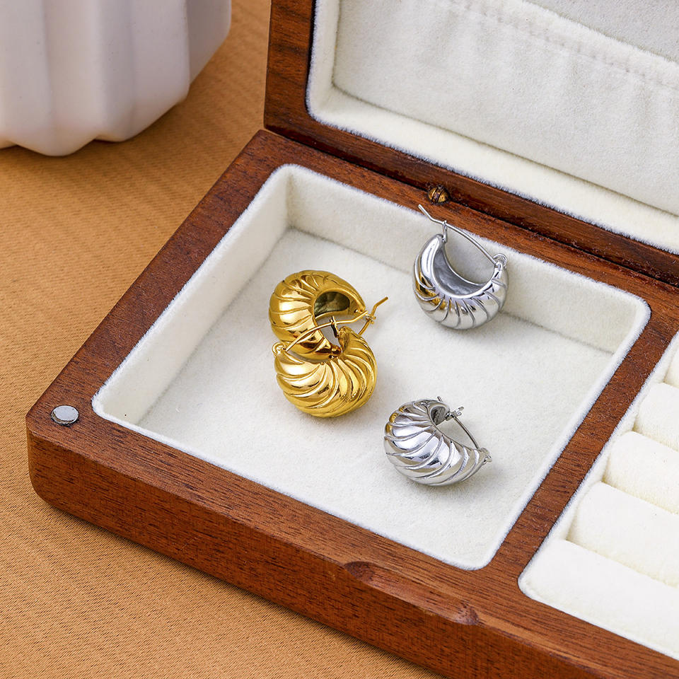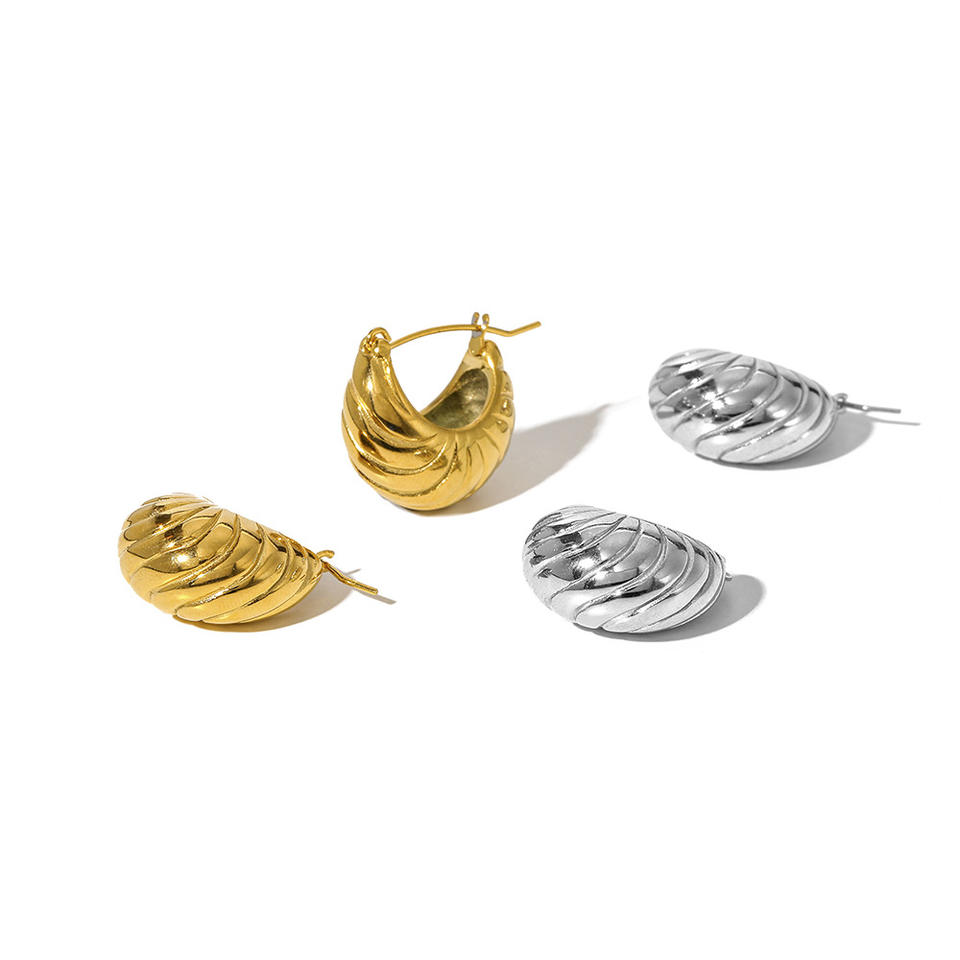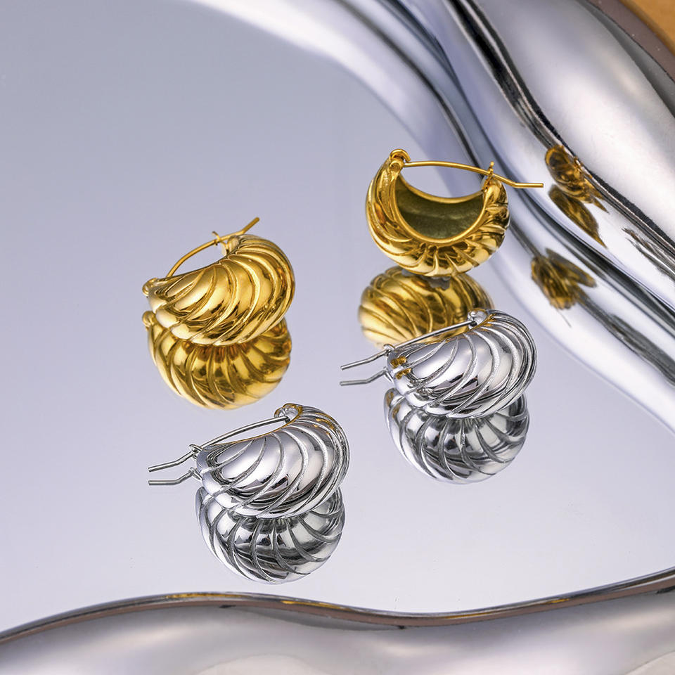 ต่างหูห่วงไทเทเนียมทรงเกี๊ยวสไตล์ยุโรปอเมริกันสำหรับผู้หญิง เครื่องประดับแฟชั่นสำหรับงานปาร์ตี้ สีเงิน สีทอง