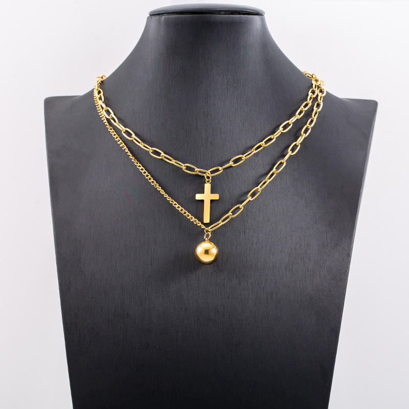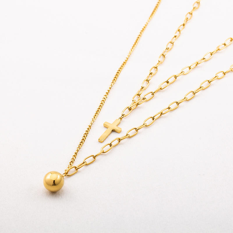 สร้อยคอรูปกางเขนสองชั้นสไตล์ยุโรปอเมริกัน ชุบทอง ไทเทเนียมสตีล สำหรับทุกเพศ แบบสั้น หลายชั้น คล้องไหปลาร้า
