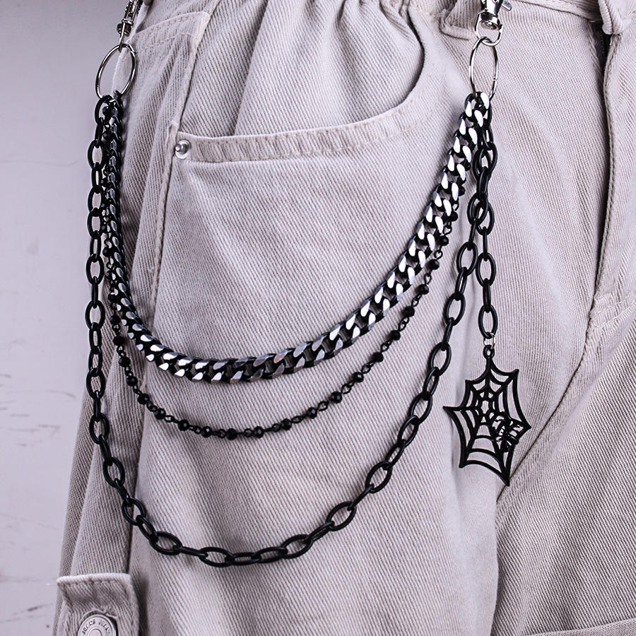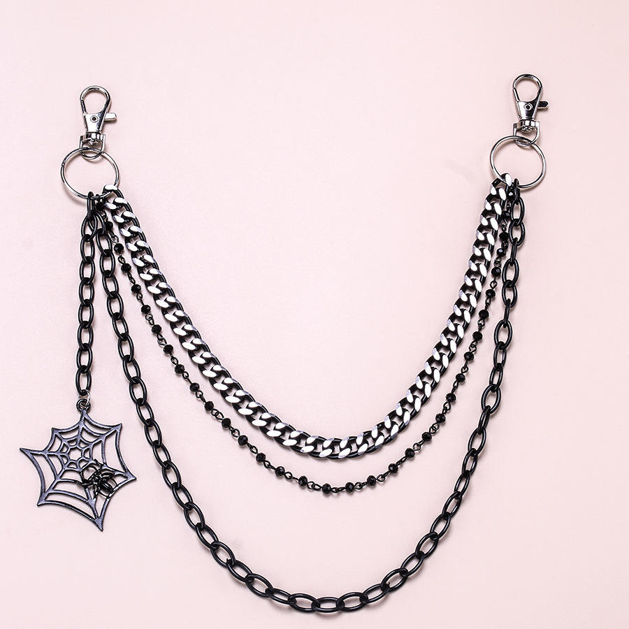 โซ่คาดเอวสไตล์ยุโรปอเมริกัน ลายใยแมงมุมสามชั้น แนวพังก์เมทัล สำหรับฮาโลวีน เครื่องประดับฮิปฮอป