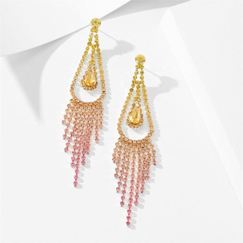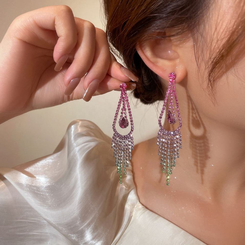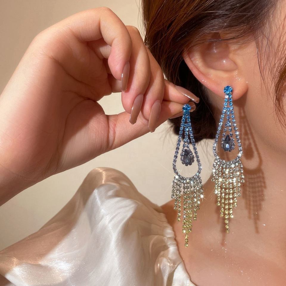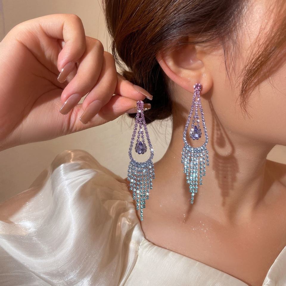 ต่างหูระย้าประดับเพชรเต็มวง สไตล์ยุโรป-อเมริกัน หรูหรา แฟชั่น สำหรับผู้หญิง