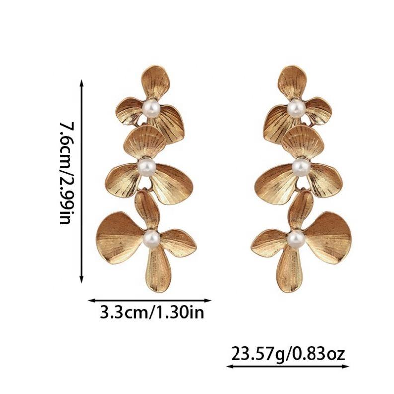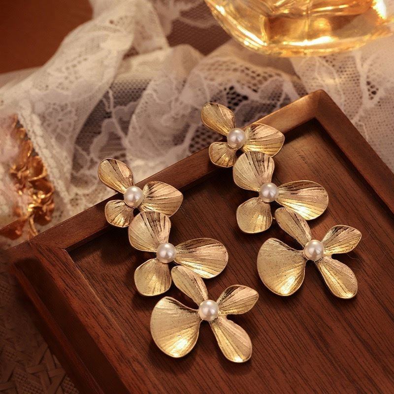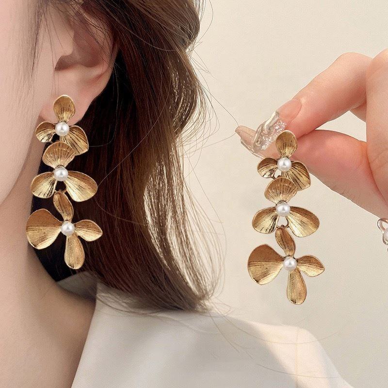 ต่างหูระย้าทรงดอกไม้ประดับเพชรชุบทองอัลลอยด์สไตล์ยุโรปอเมริกันยุคกลาง ดีไซน์หรูหราแบบเรโทร