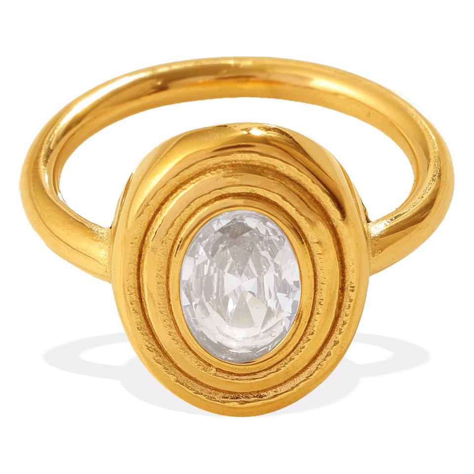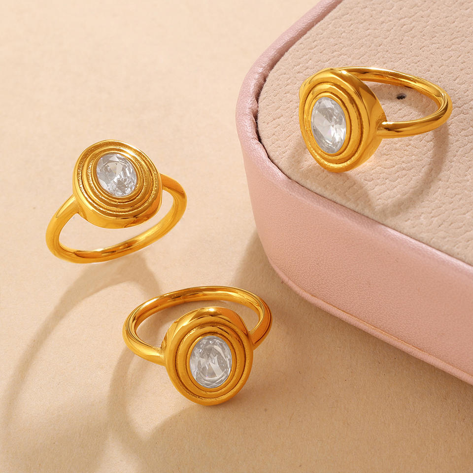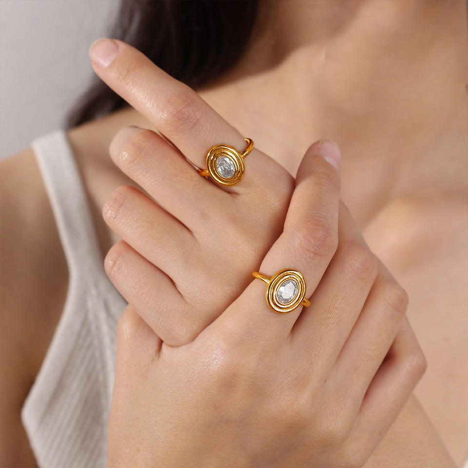 แหวนชุบทองสไตล์ยุโรปอเมริกันย้อนยุค ประดับเพชรซิร์คอน ดีไซน์เรขาคณิต สำหรับผู้หญิง ของขวัญเครื่องประดับ