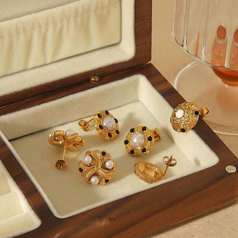 ต่างหูมุกสไตล์ยุโรปอเมริกันแบบเรโทร ประดับเพชรคิวบิกเซอร์โคเนีย ทำจากสแตนเลสสตีล ชุบทอง 18k และไทเทเนียม เหมาะสำหรับงานปาร์ตี้